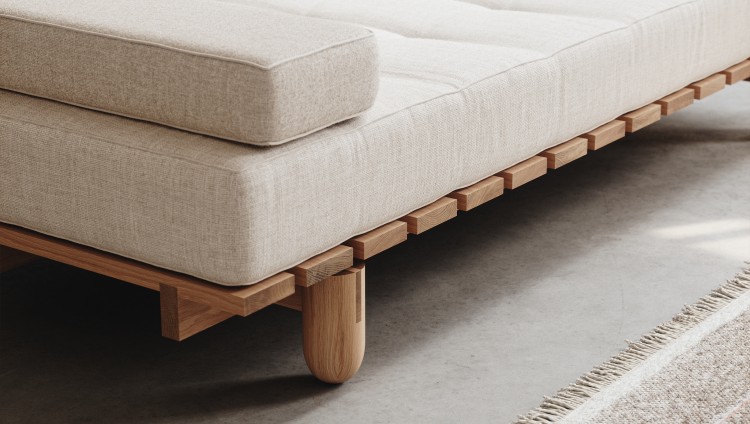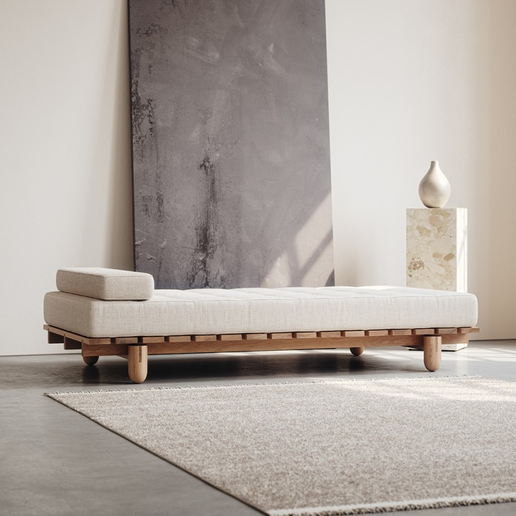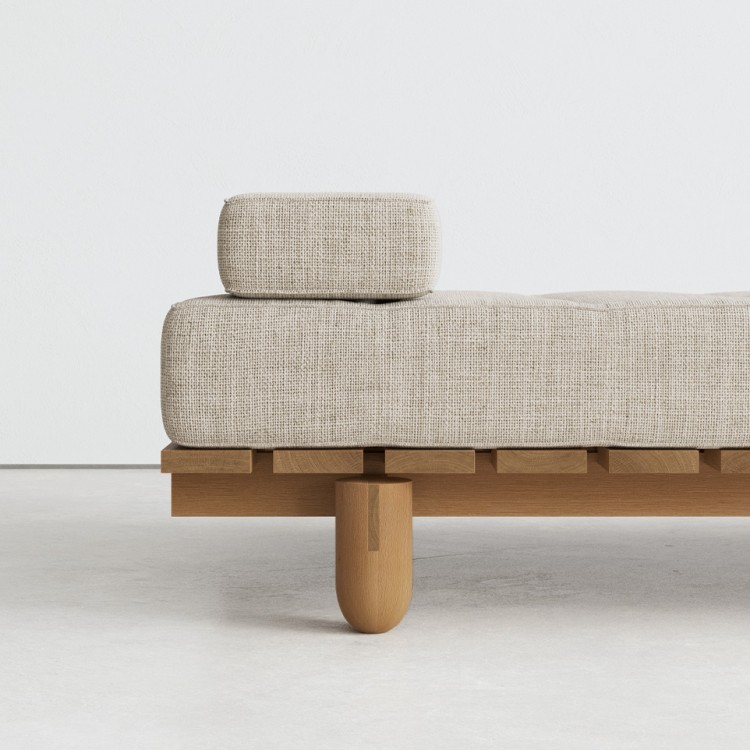 Made with solid wood frame, the Platform Daybed is topped with hand stitched tufted cushions. Fabric is COM.