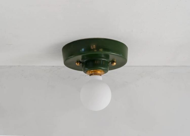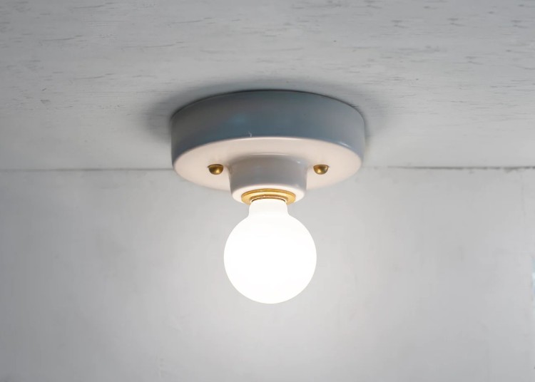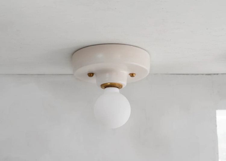 This porcelain surface mount or flush mount-style light is designed to be installed on a ceiling or as a wall sconce, alone or in multiples. Inspired by a 1930s fixture, this light is the perfect solution for a home with lower ceilings or an old house remodel that is seeking to be connected to the past. Designed and made in the Hudson Valley.