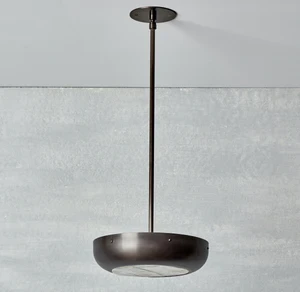 Encased in spun bronze, the Lucille emanates diffused light through a pane of selenite as a pendant or flush mount. Expect natural variations in each unique fixture