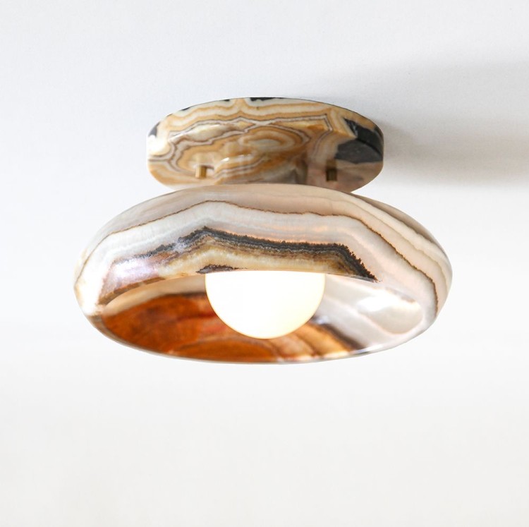 Our Piedra lighting takes its inspiration from the stone masks of the ancient civilization of Teotihuacán. Carved in the Mexican city of Tecali — which means ‘stone house’ in Nahuatl — these wall sconces and semi-flush mount lights draw on the clean lines, defined angles, and streamlined silhouettes that epitomize the pre-Colombian stone masks. Sculpted from carefully chosen marble or onyx, each piece reflects the unique character of the individual stone from which it is formed.