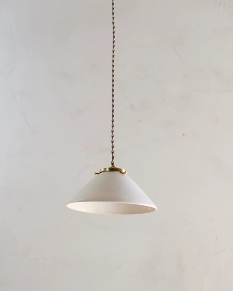 A simple porcelain pendant that speaks volumes. Each light is handmade to order, and each shade is hand-thrown on the wheel and is unique within the tolerances outlined below.