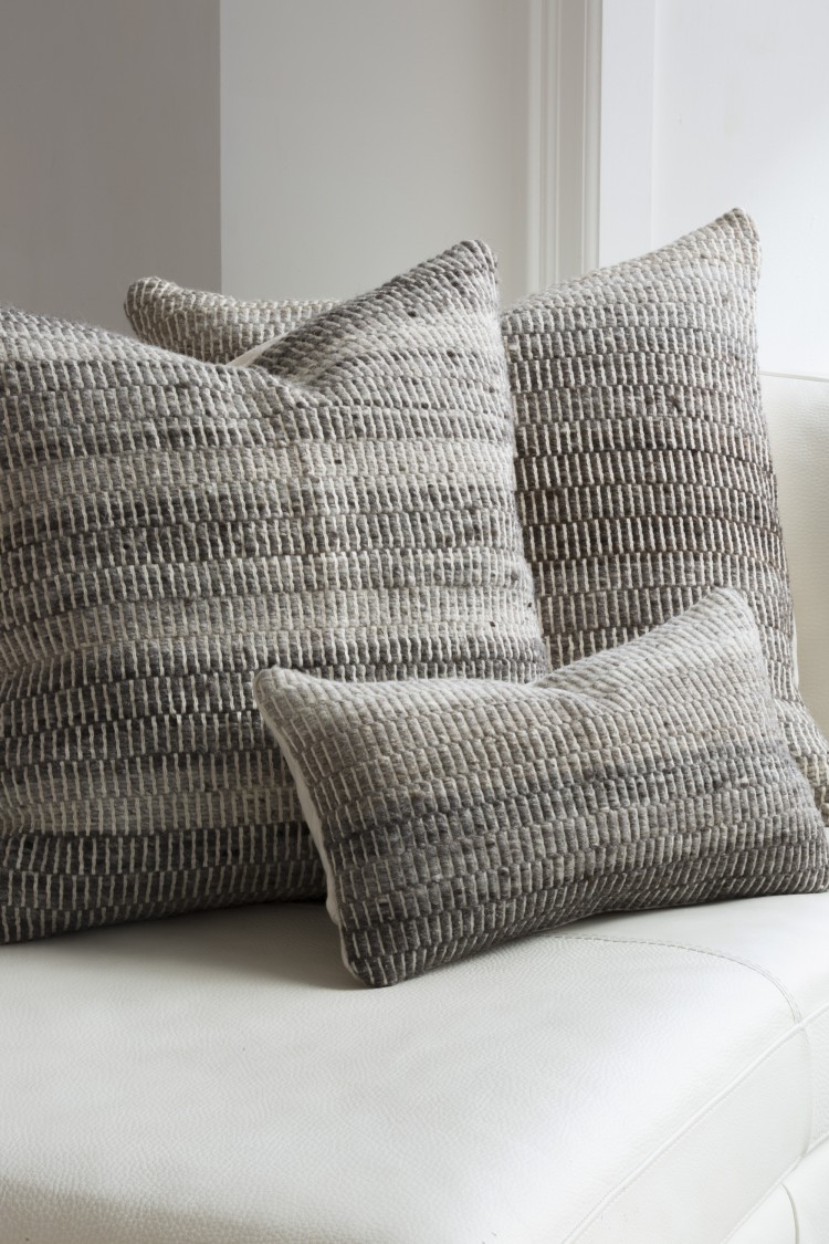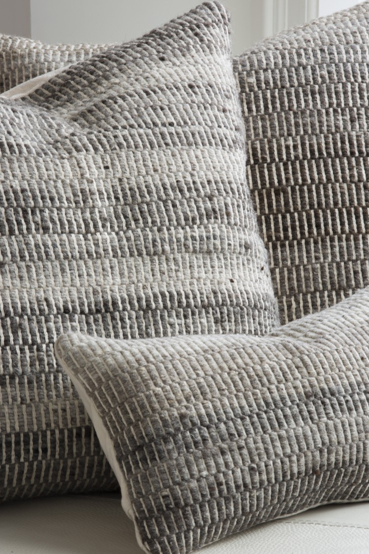 The Greige Design has its origins in the rich textile traditions of Sardinia, and was realized for the first time as a result of the collaboration with architecture studio Bonetti-Kozerski. This elegant pillow is a compound weave with hand-spun wool from Chiapas and cotton warp.