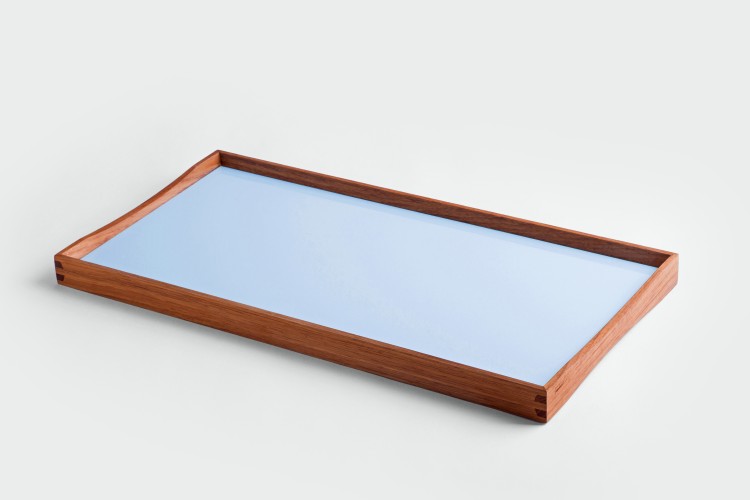 Turning Tray was designed in 1956 by Finn Juhl, bearing his trademark curved teak frame and precise corner joints. Made without handle bars, the tray’s curvature allows space to pick it up. Designed as dual-sided, the Turning Tray boasts two glossy laminate sides held together by carefully crafted corner joints.