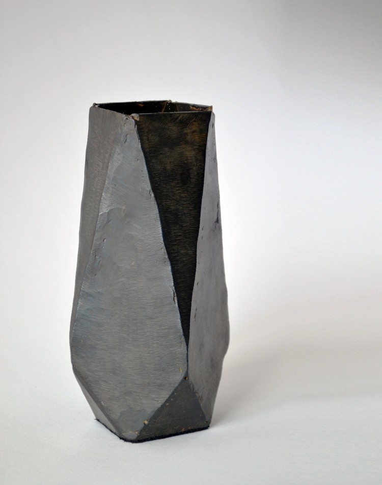 Mathematically designed and hand-wrought, this vessel uses 12-facets to help form this unique object that adds depth and design function to any space it is incorporated in.