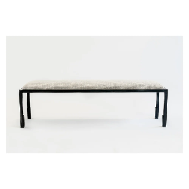 Creating beautifully designed textiles and blackened steel, this bench is designed to reimagine what a bench can be, while also combining elegant design, with simplicity. Pricing for this bench is based on commission, but please inquire within.