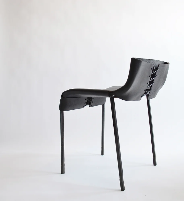 Inspired by a Spanish toreador, this sleek combination of blackened steel and thick bull leather. Can be modified to any seat height.