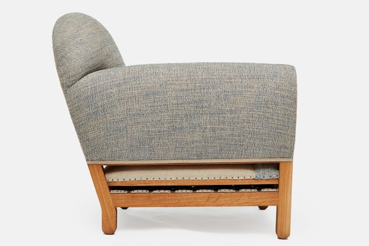 Inspired by the style of the French club chair, this comfortable chair features overstuffed arms and hand-tied coil springs throughout that give the chair a soft, supportive feel. To build our version of the French club chair, we used upholstery techniques that pre-date the introduction of foam in the mid-20th century. The stitched arm faces and open back create interest as they highlight traditional hand work.