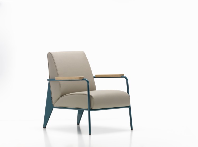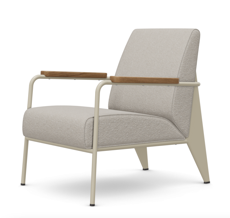 Developed by Jean Prouvé in 1939, the Fauteuil de Salon is a typical example of the distinctive structural aesthetic of his designs. The armchair's understated character suits a wide variety of interiors, and its ample upholstery and oiled, solid wood armrests emanate inviting comfort.