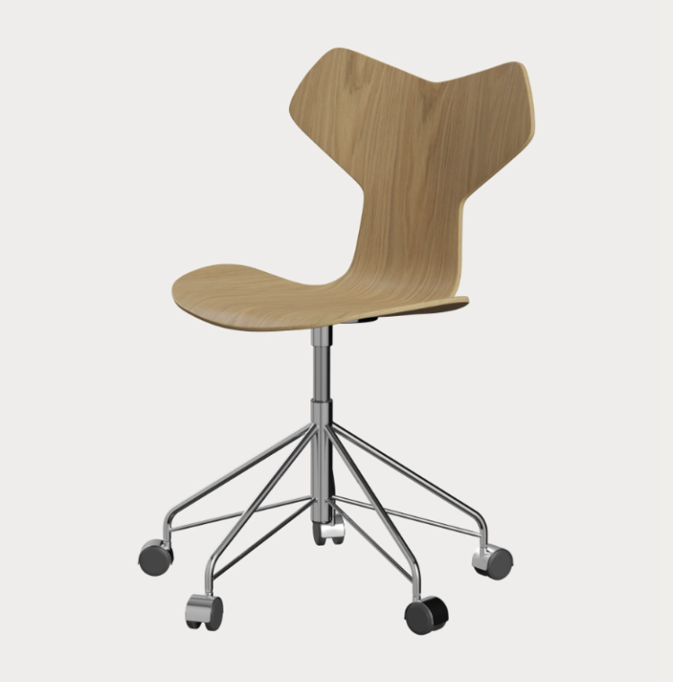 The Grand Prix™ chair is an iconic Arne Jacobsen design with a graphic edge. It was introduced at the Designers’ Spring Exhibition at the Danish Museum of Art & Design in 1957. Later that year, the chair was displayed at the Triennale in Milan, where it received the Grand Prix, the finest distinction of the exhibition. The celebrated chair comes in a range of models and can be customised with an almost endless variety of colours, wood types and upholstery.