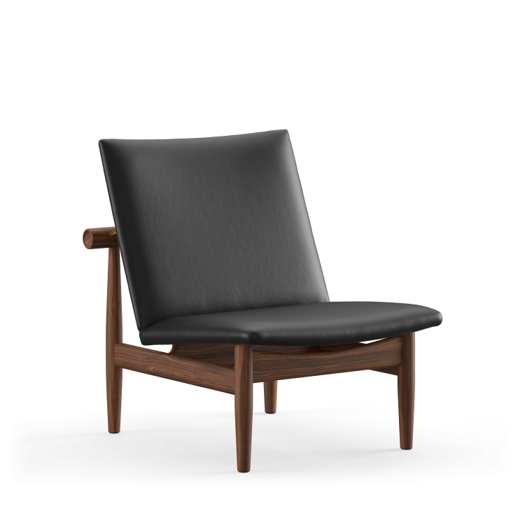 A few years after Finn Juhl’s debut at the Cabinetmaker’s Guild Exhibition he became increasingly interested in applying wood as the dominant shaping material, rather than ‘hiding’ it under a cover of upholstery. When he designed the 45 Chair it had become his objective to create a chair that was almost self-explanatory in its construction and he became one of the first to clearly disconnect the upholstered areas from the wooden frame. The result was an elegant and tantalizing expression that came to characterize Finn Juhl.