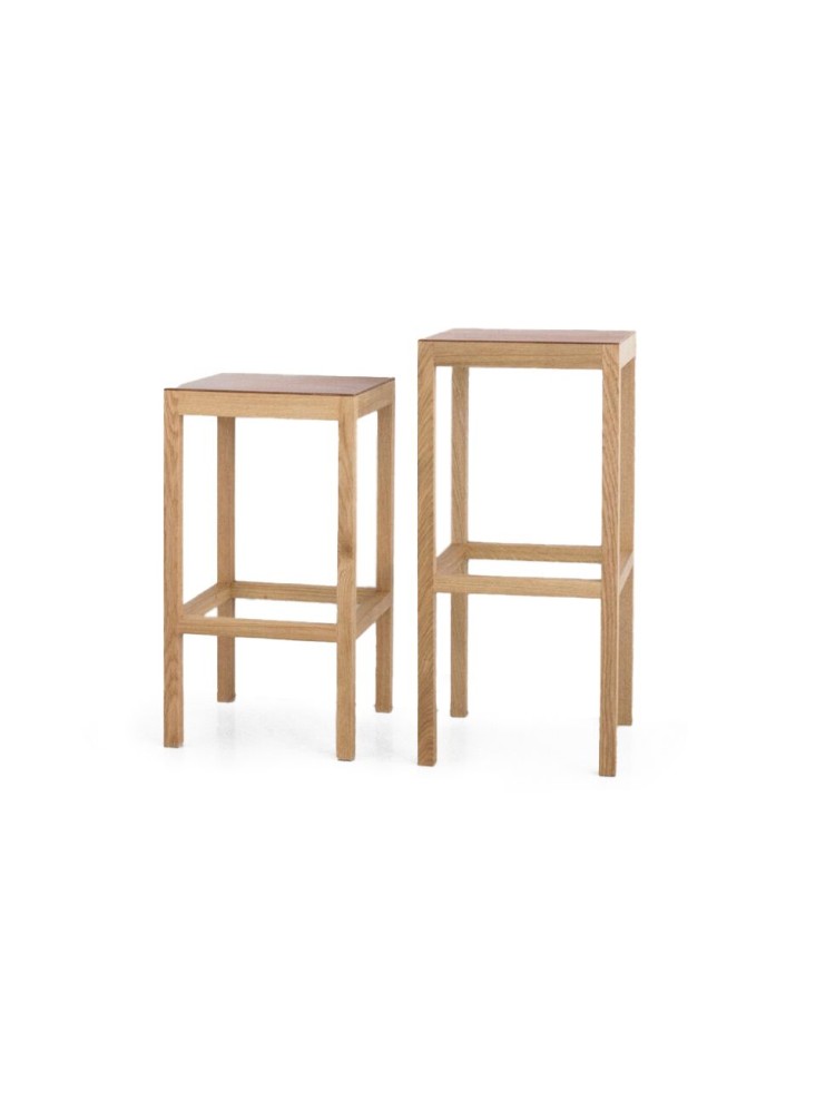 KBH Stool and KBH Bar Stool is made of solid oak and is available in two different hights and two colours: oak with a leather seat in Naturale and medium fumed oak with black leather