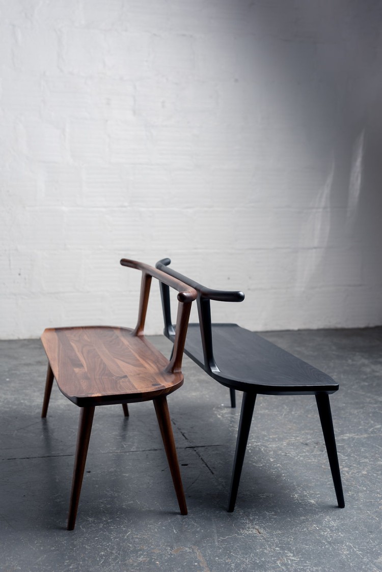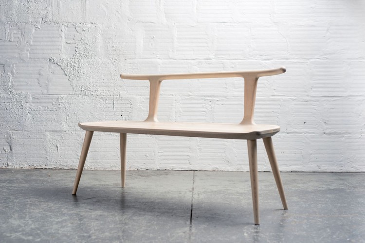 This entryway bench evolved out of the Oxbend dining chair. The Oxbend Collection was born from a desire to create seating that is comfortable, organic, and elegant in its simplicity. This Oxbend bench incorporates subtle hand-shaped tubular curves and classic wedged-tenon leg joinery and a beautiful finger-jointed back rail. Whether used as seating in an office space or as an entryway bench or bedroom settee it seeks to complement your existing furniture.