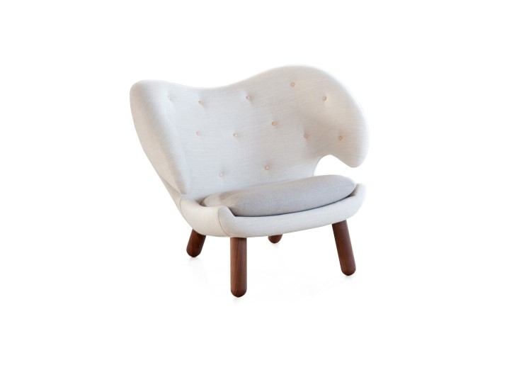 Finn Juhl’s fascination for surrealism is clearly visible in the Pelican Chair. Out of all his many designs, the Pelican Chair was probably the one furthest ahead of its time. The Pelican Chair is produced in two versions - with or without buttons. It is manufactured with a cushion and upholstered by hand in Denmark.