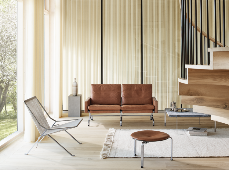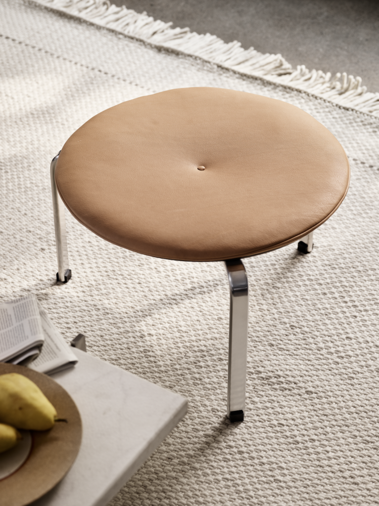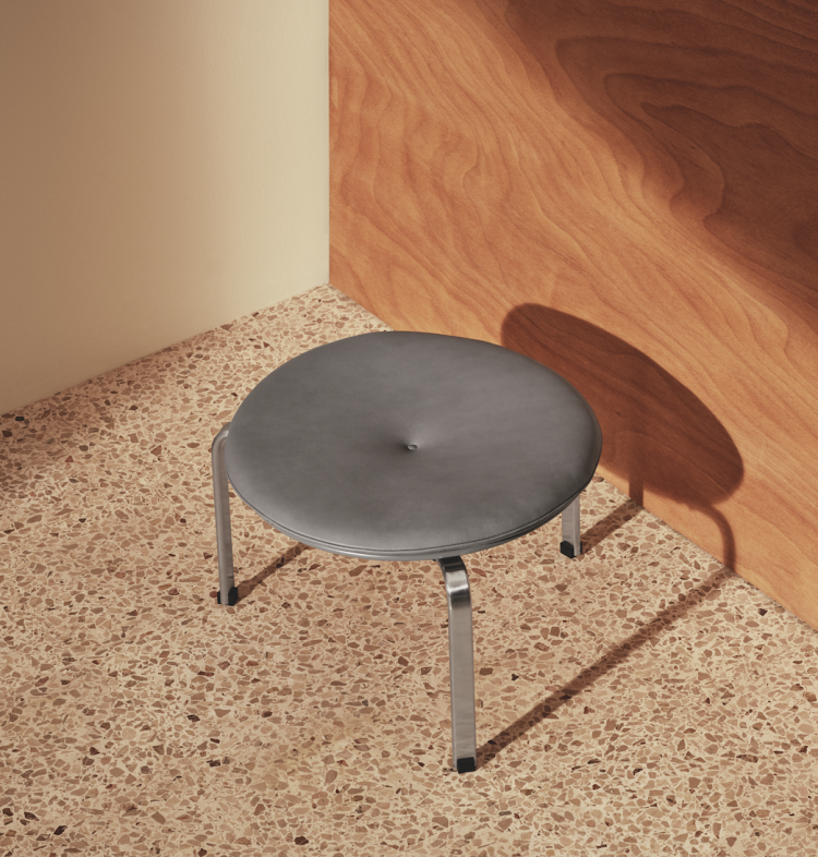The iconic PK33™ epitomises Poul Kjærholm’s use of assembly techniques, his exploration of materials and his simplification of structure into a type-form. The three-legged matt chromed spring steel stool borrows elements from his other designs, while still maintaining its own unique expression.