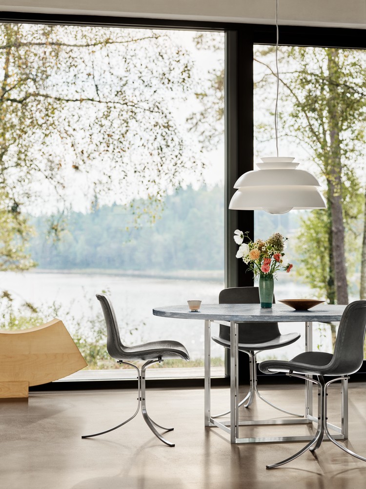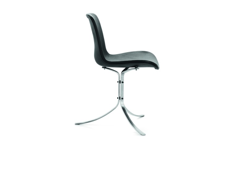 The PK9’s unique shape is characterised by three pieces of satinbrushed stainless spring steel that act as a column, carrying the leather seating element. Poul Kjærholm was inspired by a sand imprint of his wife’s behind from a day at the beach. Later, during the design process, Hanne Kjærholm sat in boxes of clay to find the most optimal and comfortable solution.