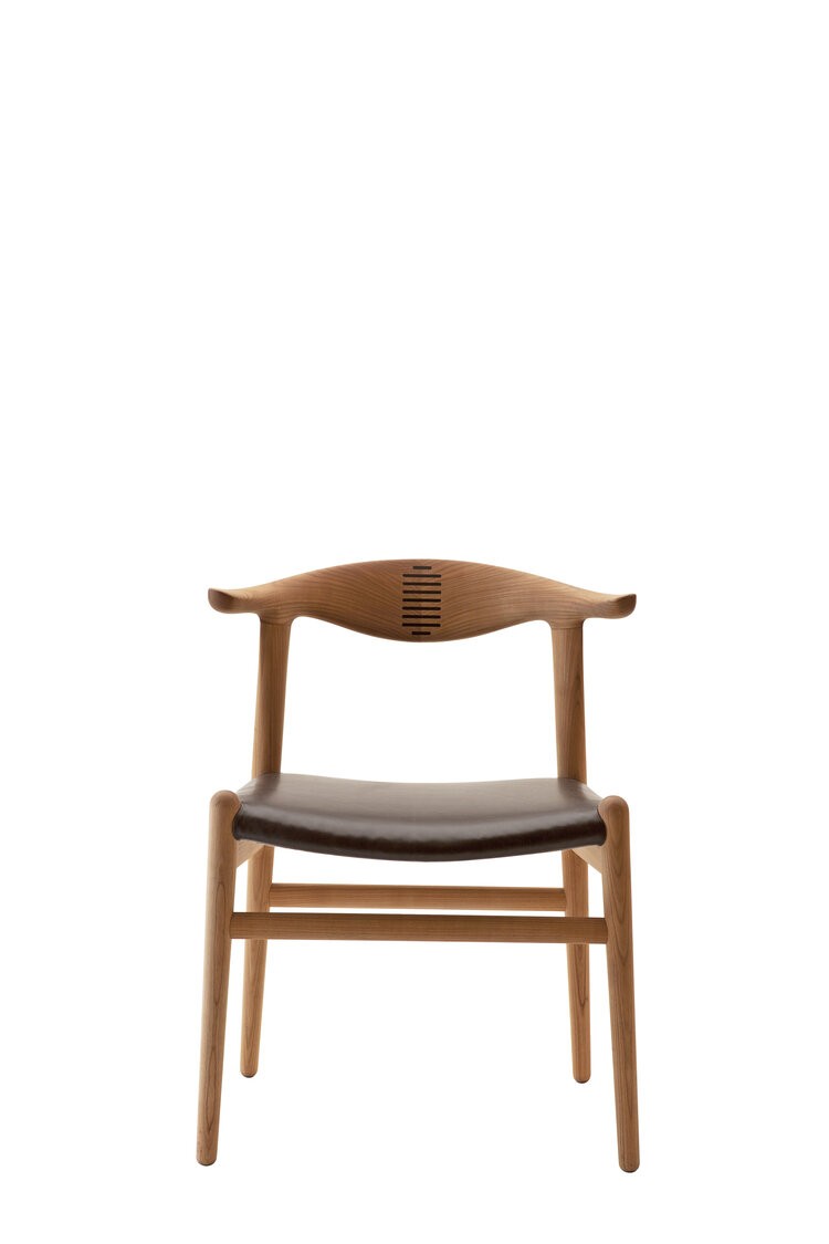 Designed in 1952 the Cow Horn Chair is the immediate follow up on the breakthrough of Wegner’s career, pp501/pp503 Round Chair. The continuity in shape and philosophy is obvious but designed for a different purpose, Wegner created a smaller chair that would easily fit underneath the table thus making it more suitable for the dining set.