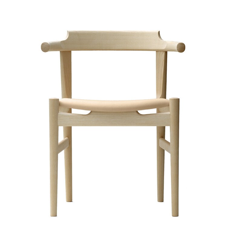 Materials: Soaptreated: Oak or Ash or Beech White Bio Oil: Oak or Ash or Beech Clear Bio Oil: Oak Lacquer: Black pp68/pp58 is optimised to be practical. The short armrests makes it easy to enter and move around the chair. It fits well underneath the table and can also hang from the table top to make cleaning easier. The solid wood tenon joints have been tested to withstand one ton of pulling strength. The combined arm and backrest is made of one piece of solid steam-bent wood. pp58 comes with an upholstered seat in either fabric or leather. Felt pads (optional) available in: white, black, gray, light brown or dark brown