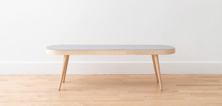 Topped with plush merino felt, this slim bench is designed for use at the end of your bed or in an entryway. Age-old construction techniques are used to create this modern, streamlined piece of furniture. Softening high-quality air-dried wood with steam, and then bending it while hot, creates the looped forms of this bench. The wood is then cured for several weeks before being cut and assembled. A hand-applied oil finish complements and highlights the natural variation in the wood.