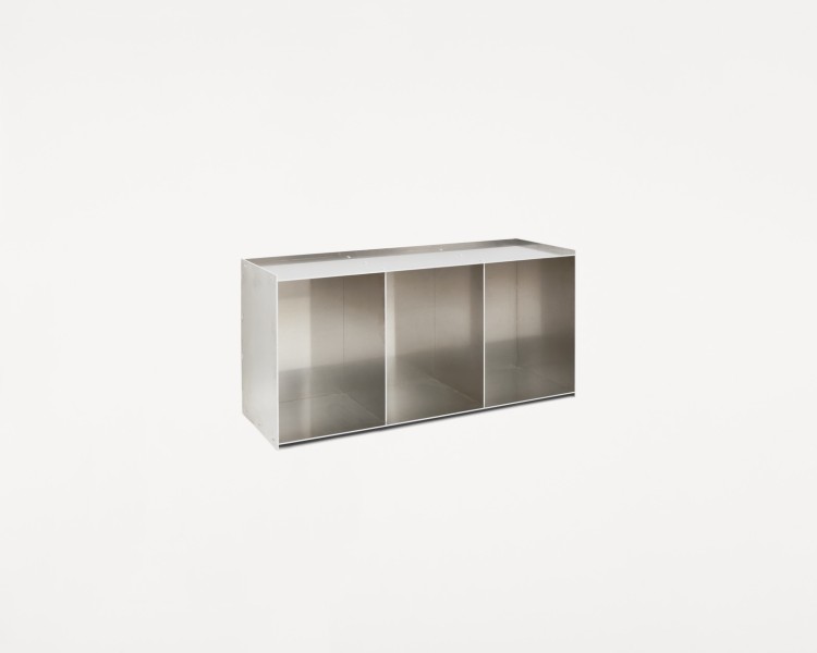 The Rivet Case convinces with its solid and versatile design. It can be placed vertically as well as horizontally while functioning as a table, storage, or display room.