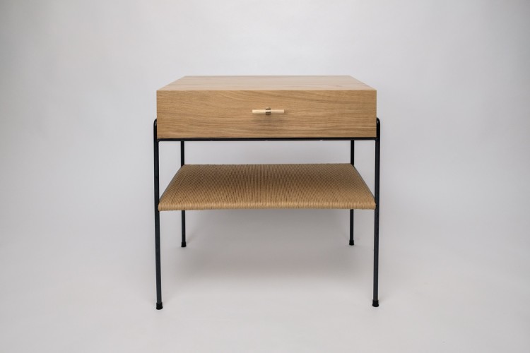 Oak and Rush Bedside Table with Drawer