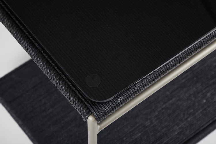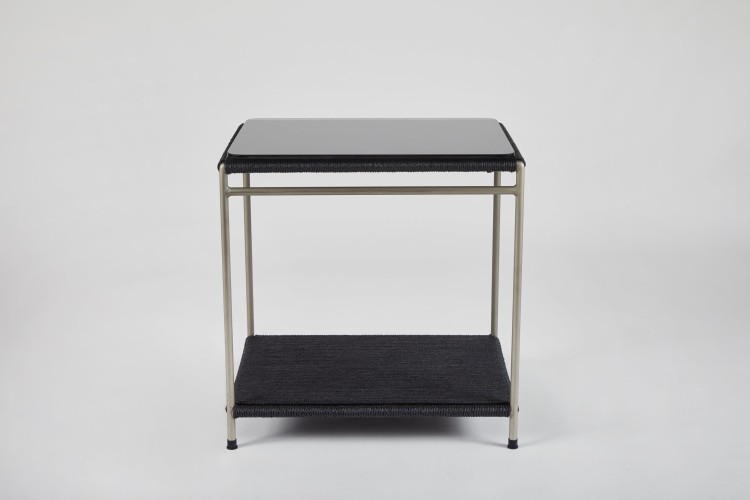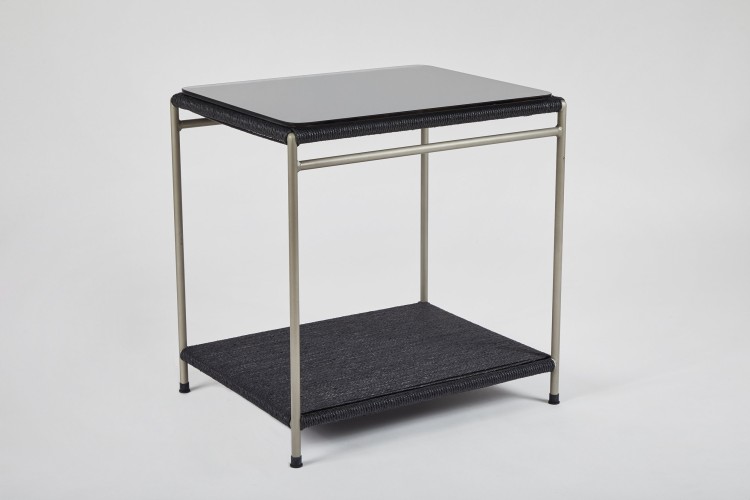 Single Rail Handwoven Danish Cord Side Table with Shelf - Nickel Plated