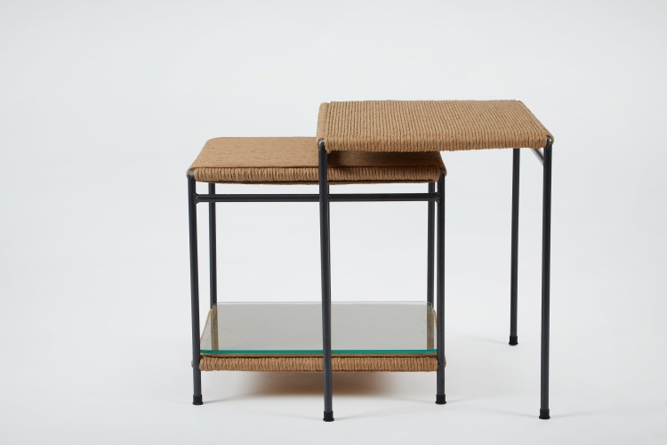 Single Rail Handwoven Rush Nesting Tables with Shelf