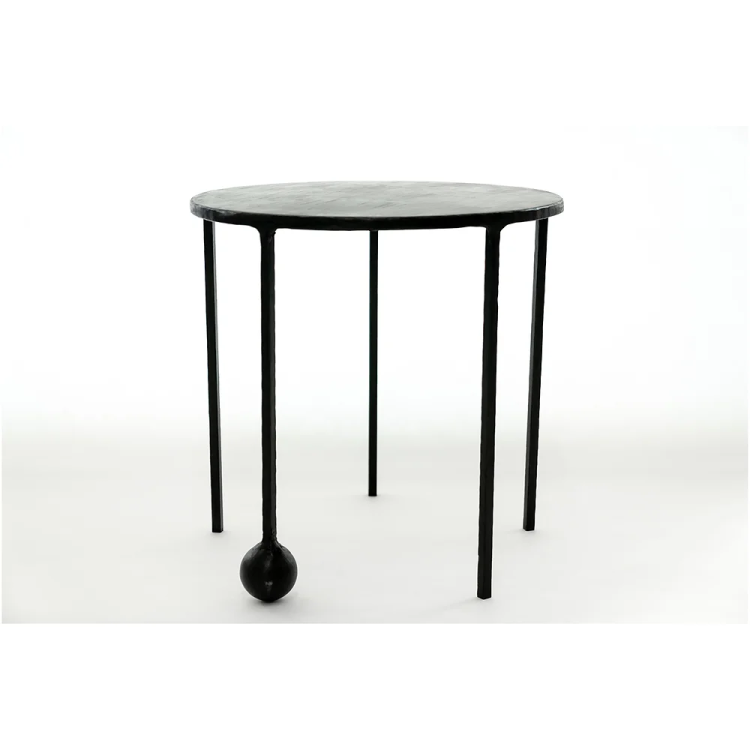 This geometric, solid, steel structure is supported by a cast-sphere base. The refined simplicity of this design speaks volumes, and adds depth and elegance to any space. Made in The Bronx, New York, USA.