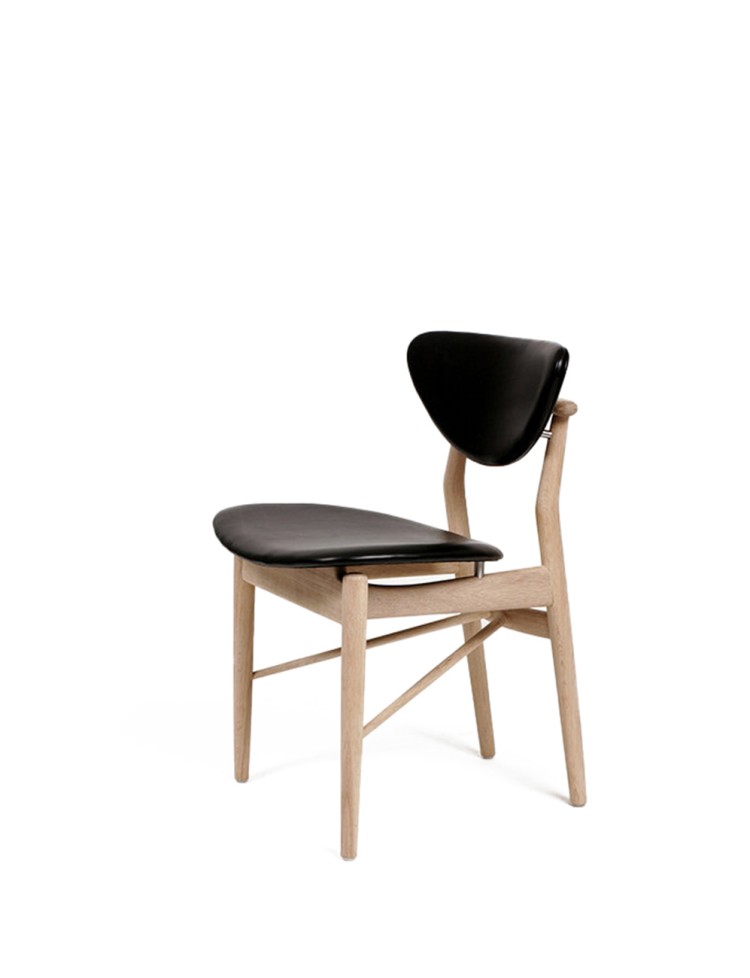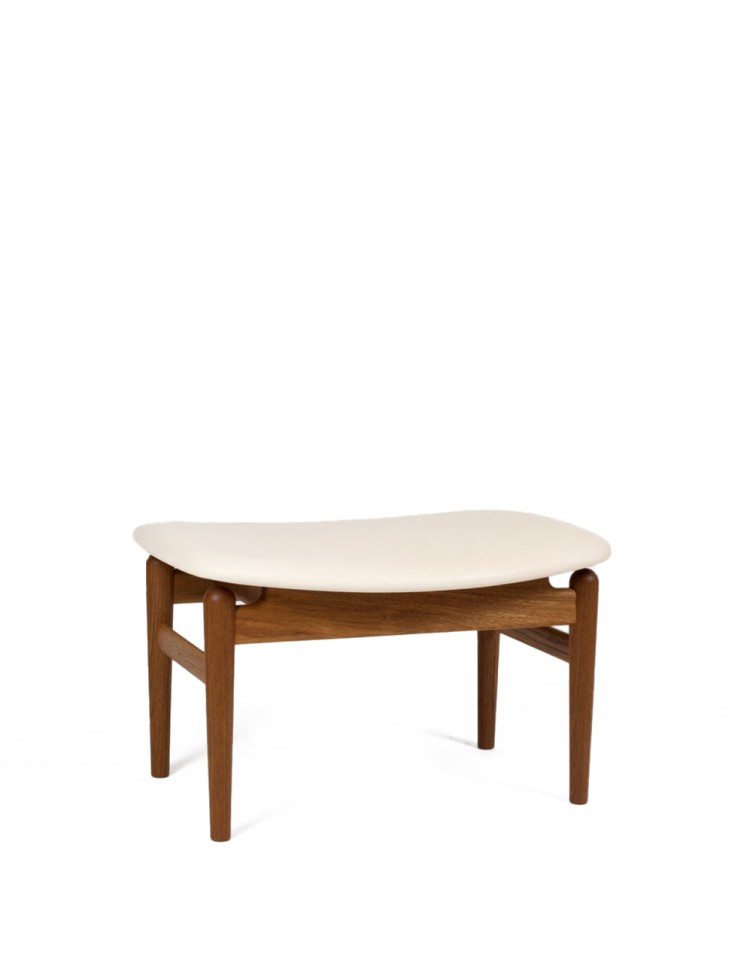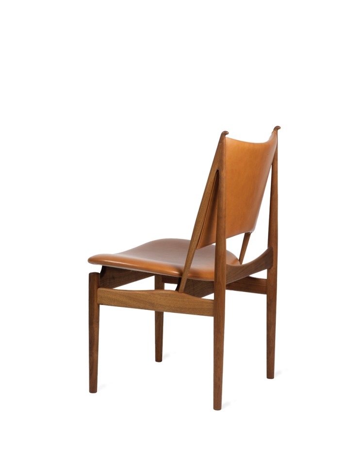 A few years after Finn Juhl’s debut at the Cabinetmaker’s Guild Exhibition he became increasingly interested in applying wood as the dominant shaping material, rather than ‘hiding’ it under a cover of upholstery. When he designed the 45 Chair it had become his objective to create a chair that was almost self-explanatory in its construction and he became one of the first to clearly disconnect the upholstered areas from the wooden frame. The result was an elegant and tantalizing expression that came to characterize Finn Juhl.