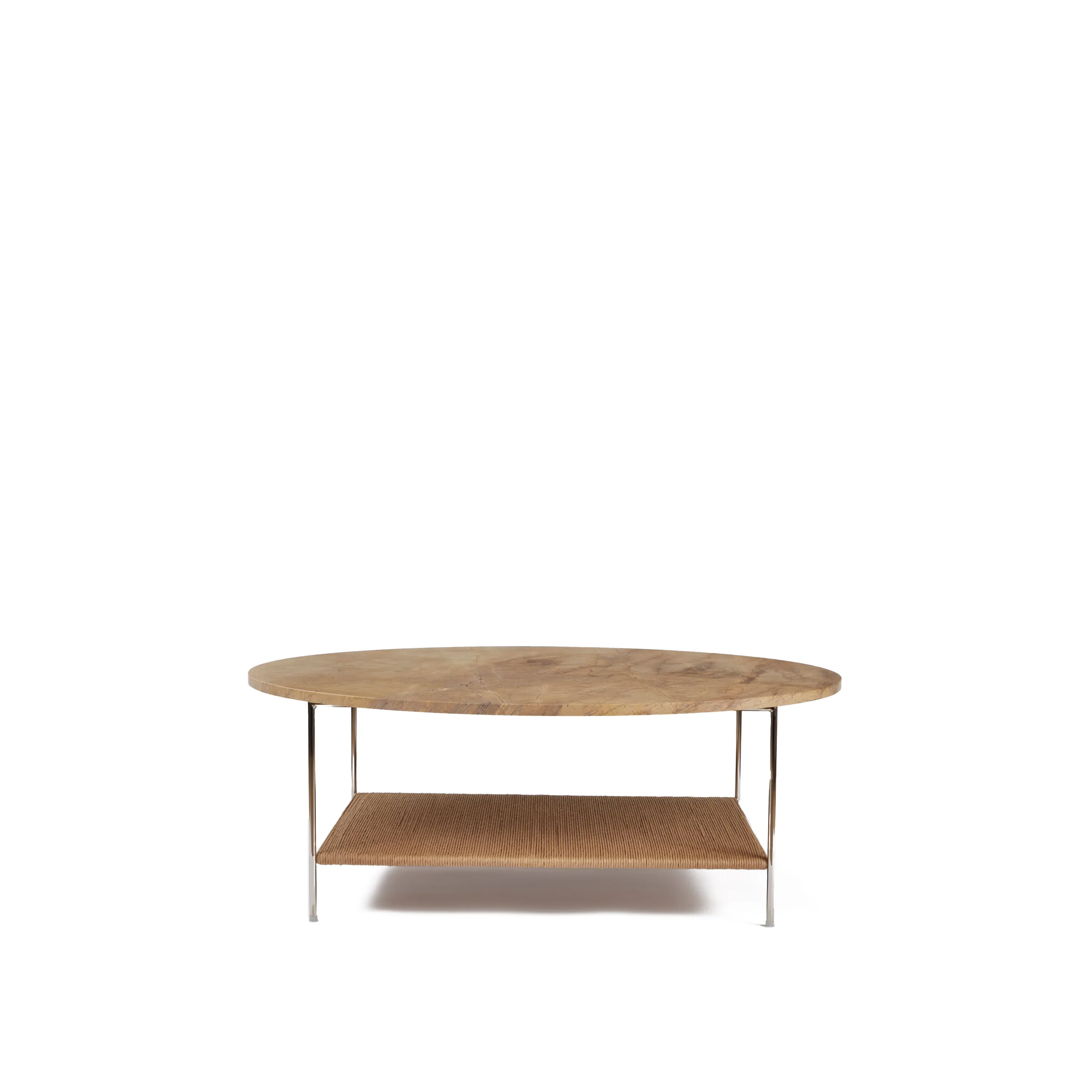 Marble Coffee Table with woven leather shelf - Polished Nickel Plated