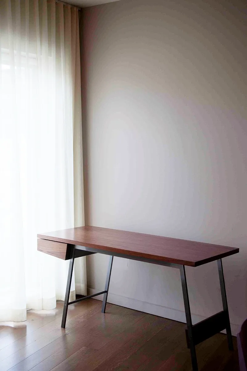 Spare, refined, and meticulously handcrafted of solid hardwoods and cold-rolled steel, the AD7 desk is distinguished by superb detailing, the finest materials and timeless design. The composition plays with the relationship between positive and negative space, yielding a dynamic, yet carefully balanced, whole.