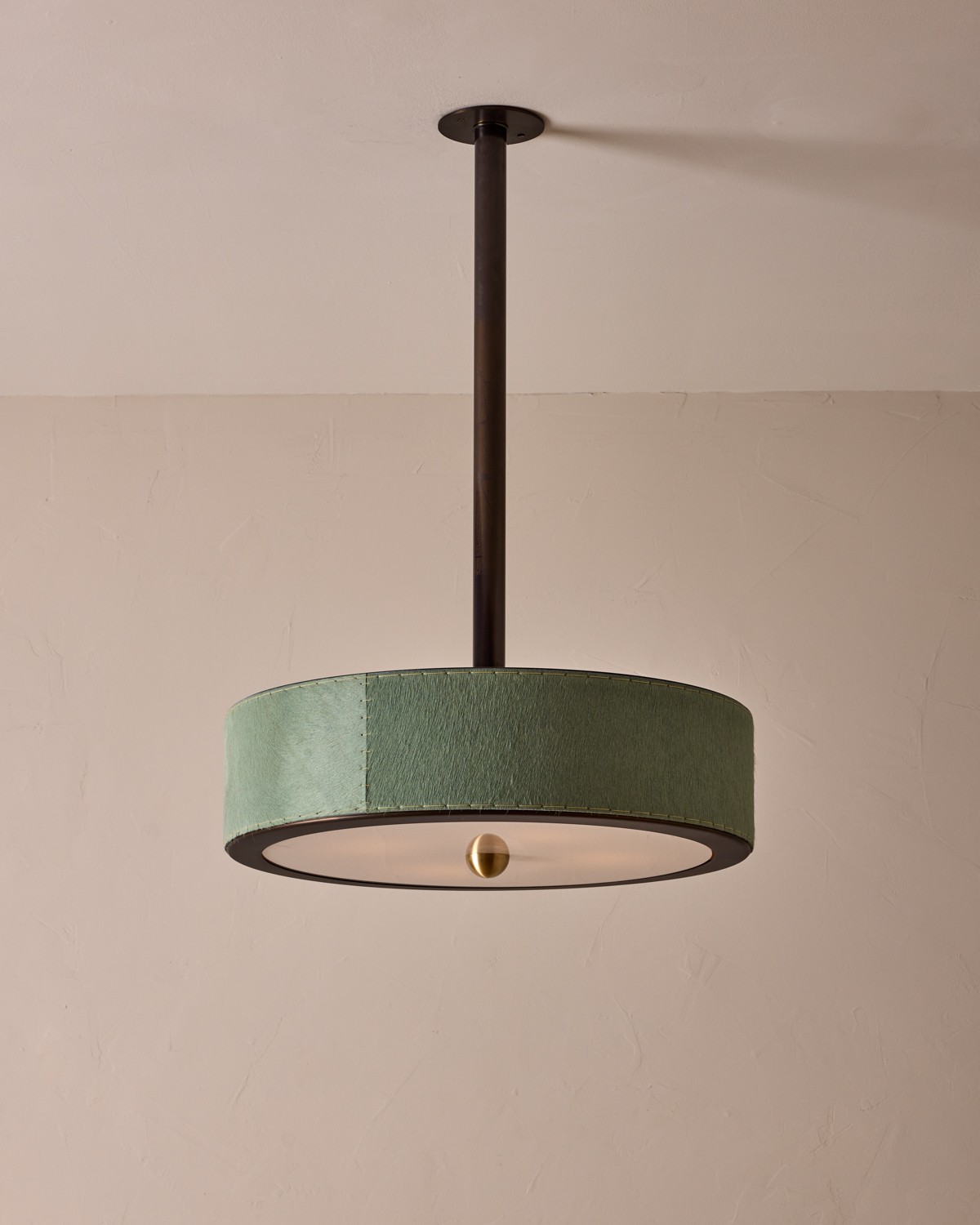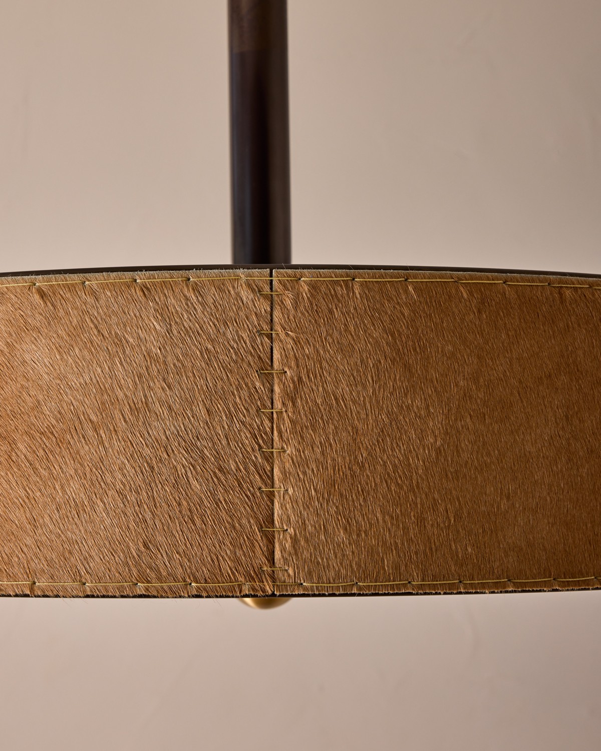 The Alina Lighting Collection brings a modern Bauhaus influence to vintage lighting design. Crafted with natural hide leather, the collection embraces the organic beauty of each piece, reducing environmental impact by minimizing leather processing. Perforations along the top create a distinctive accent while delivering functional light. The juxtaposition of leather stitching against metal offers an intriguing, textural detail, complemented by brushed satin brass accents. The softly curved, ovoid design draws inspiration from 19th-century French oil jars. Available in a variety of hues and styles, The Alina Collection offers a versatile aesthetic that complements a wide range of interiors.