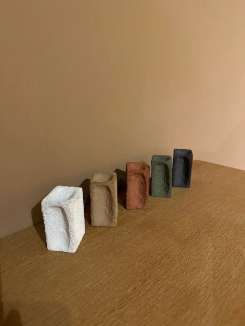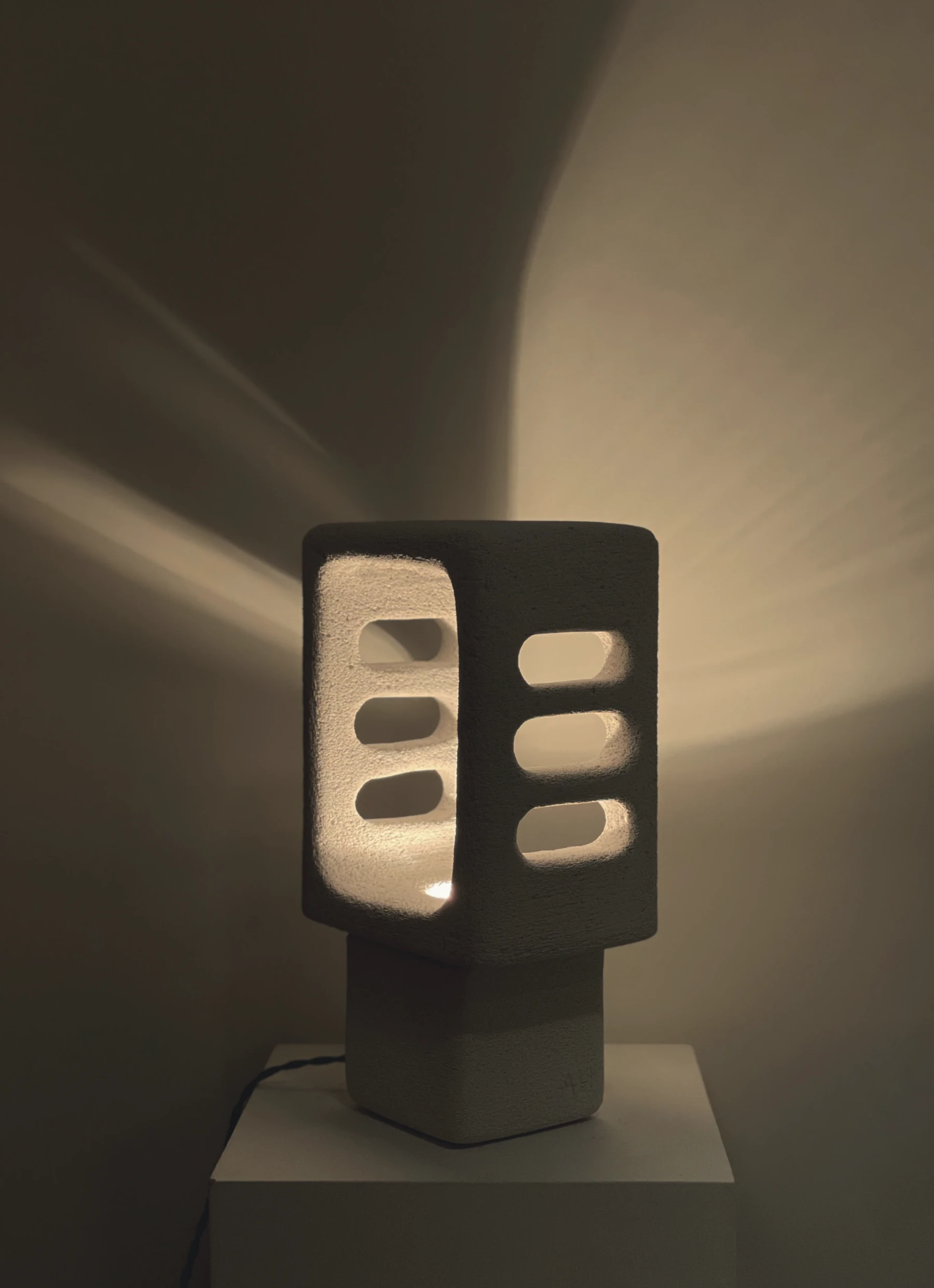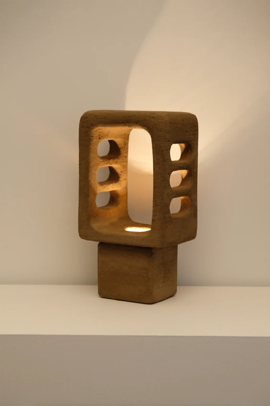 Frero's first collection, Tala Asa, consists of five light sculptures in five natural-toned finish options. This work is inspired by the earth and evokes light elements with a characteristic shadow play. Each piece is unique, with materials free to take on archaic shapes and forms, making them unique pieces of sculptural illumination.