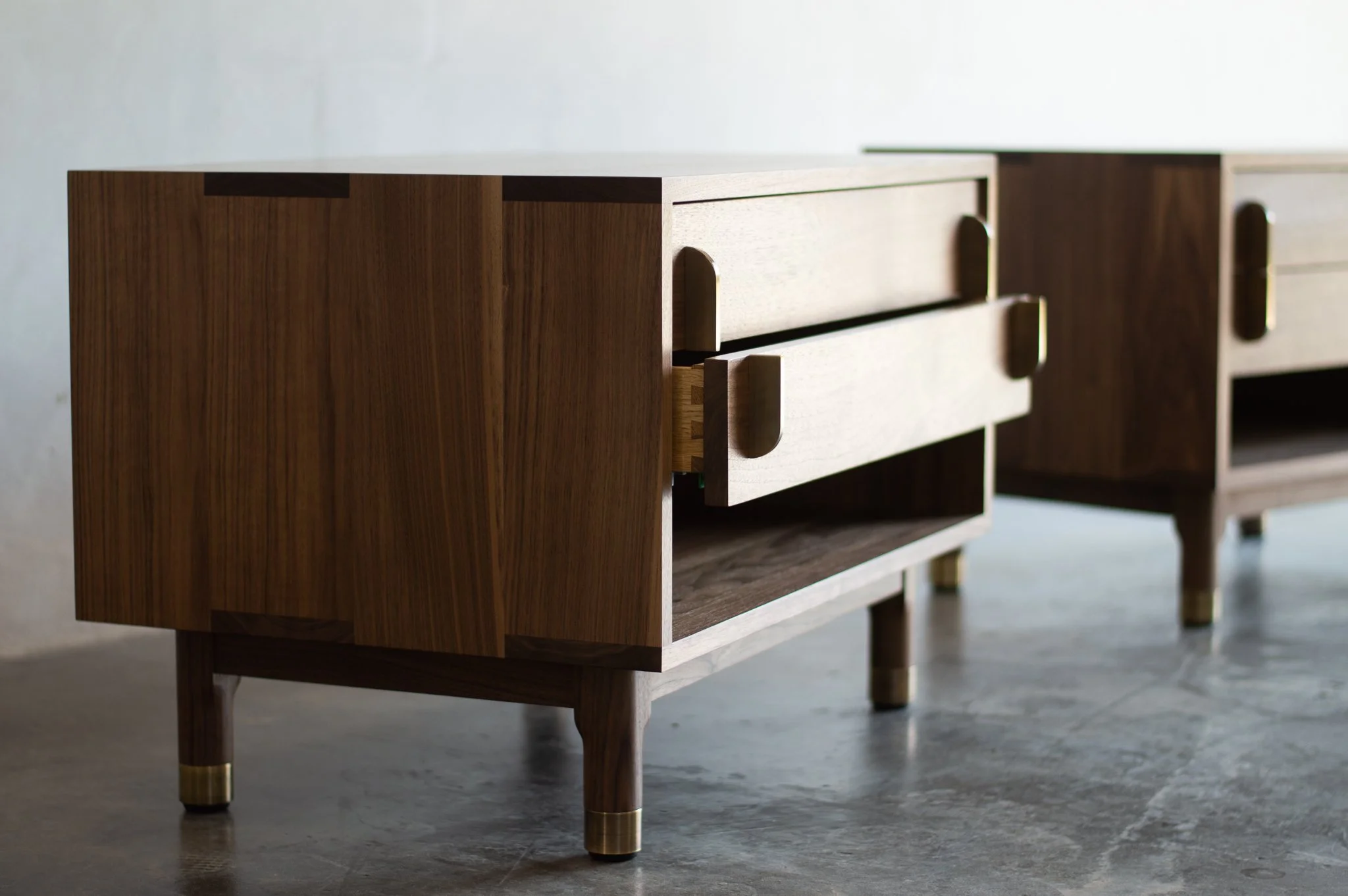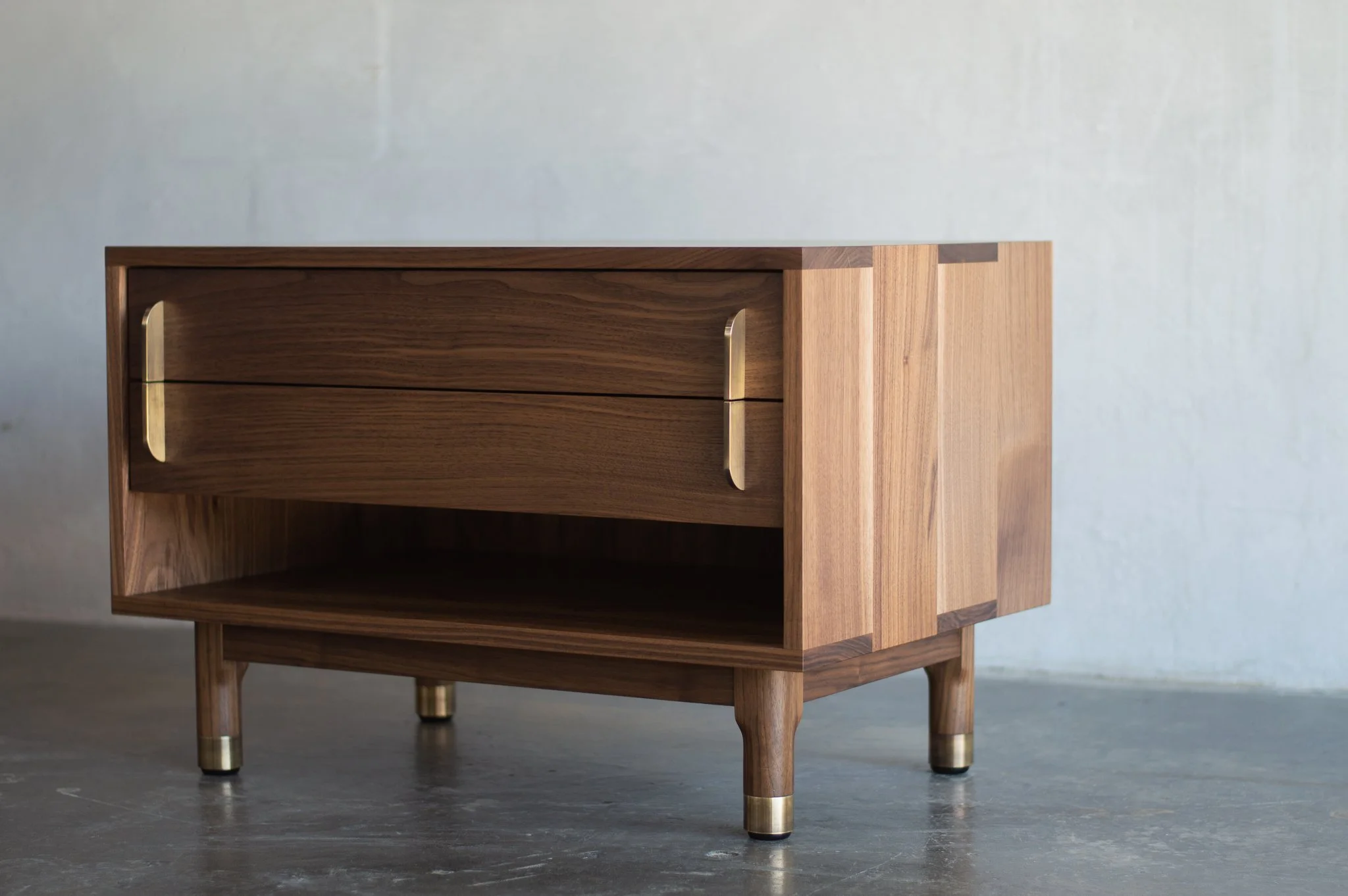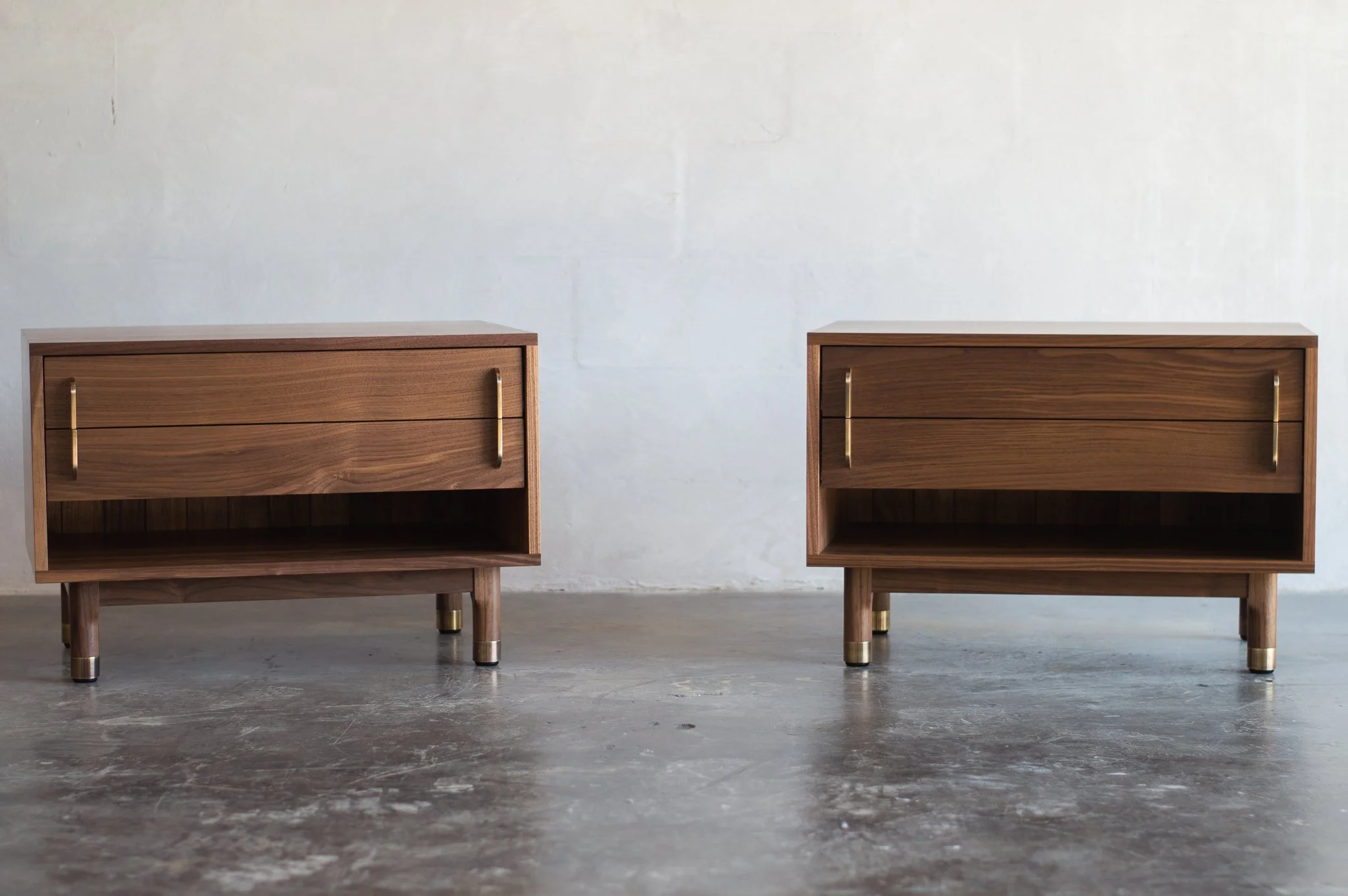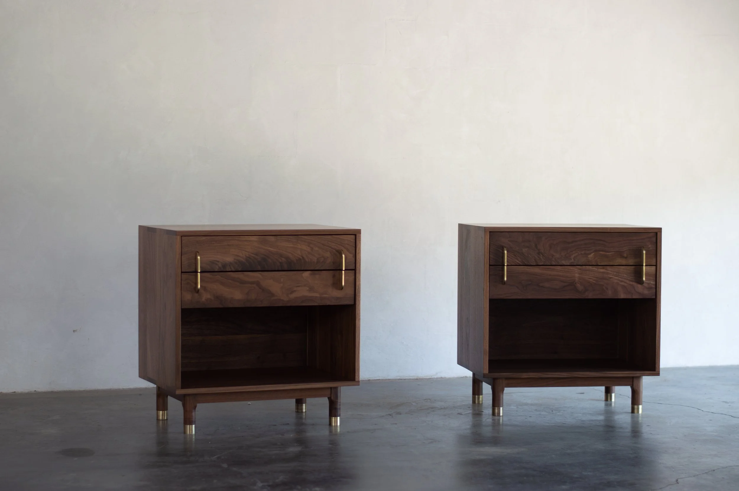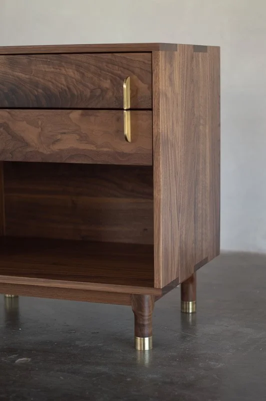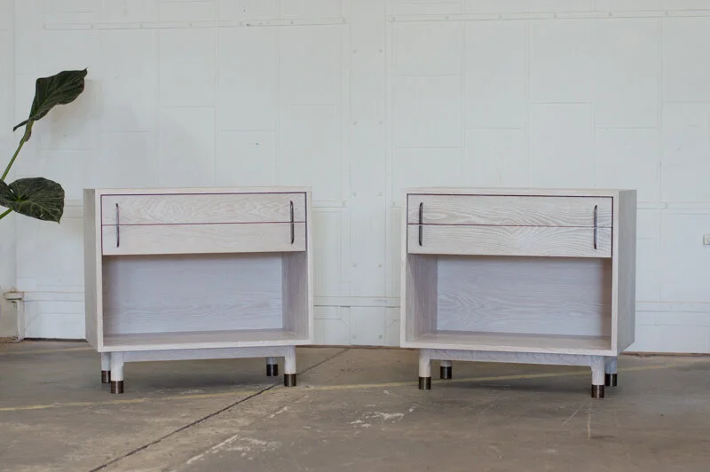 These nightstands are expertly crafted from 100% solid wood, with every detail showcasing an uncompromising commitment to quality. From the durable solid wood cases and backing to the split solid bronze hardware, each element is thoughtfully designed. The drawers, made from premium white oak, bring a touch of timeless refinement to these exceptional pieces.