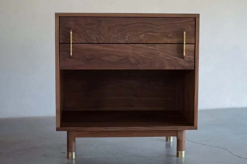 Oiled Walnut, Oiled White Oak, Fumed White Oak, Curly Maple, Bleached Maple, Bleached AshHardware and Feet available in Light Aged Bronze or Dark Aged Bronze