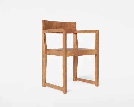 Armrest Chair 01 results from the continuous exploration of utilitarian living and the deep admiration for FRAMA’s classic, adaptable and versatile 01 Series. A dining archetype—a combination of Chair 01 defined by a geometric silhouette with two simple, neat, and refined armrests for a sturdy hold and a comfortable seating experience