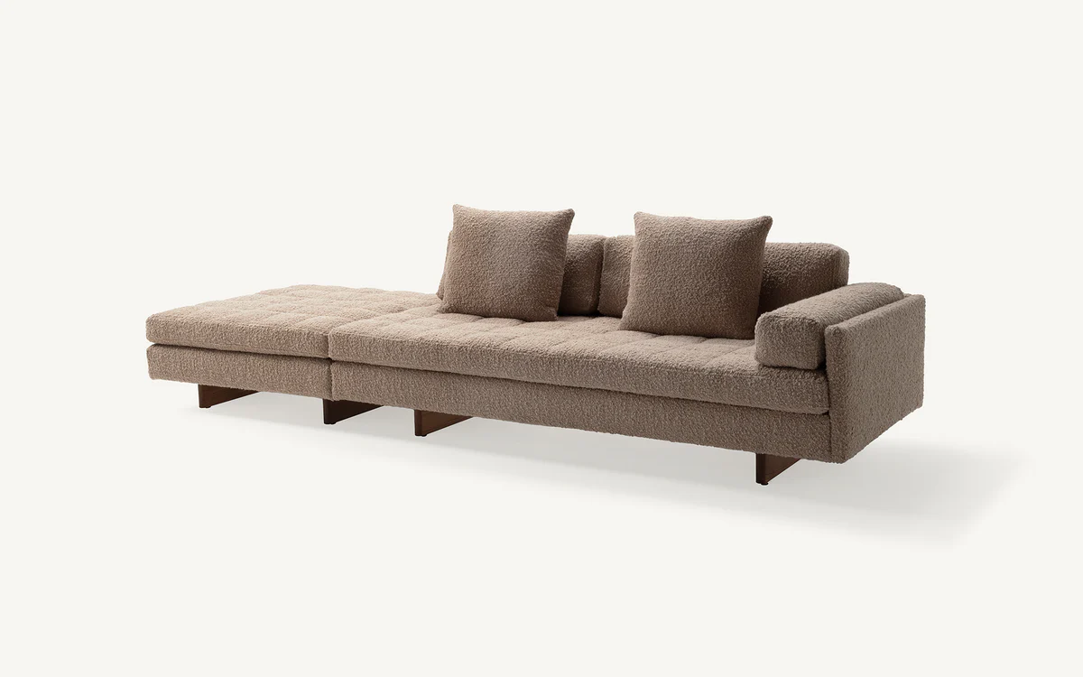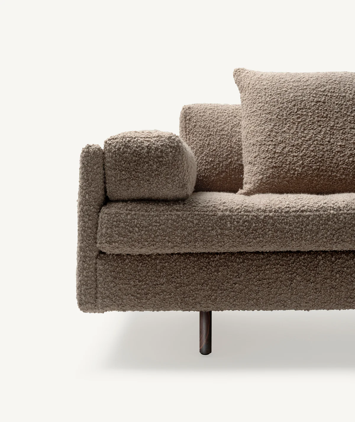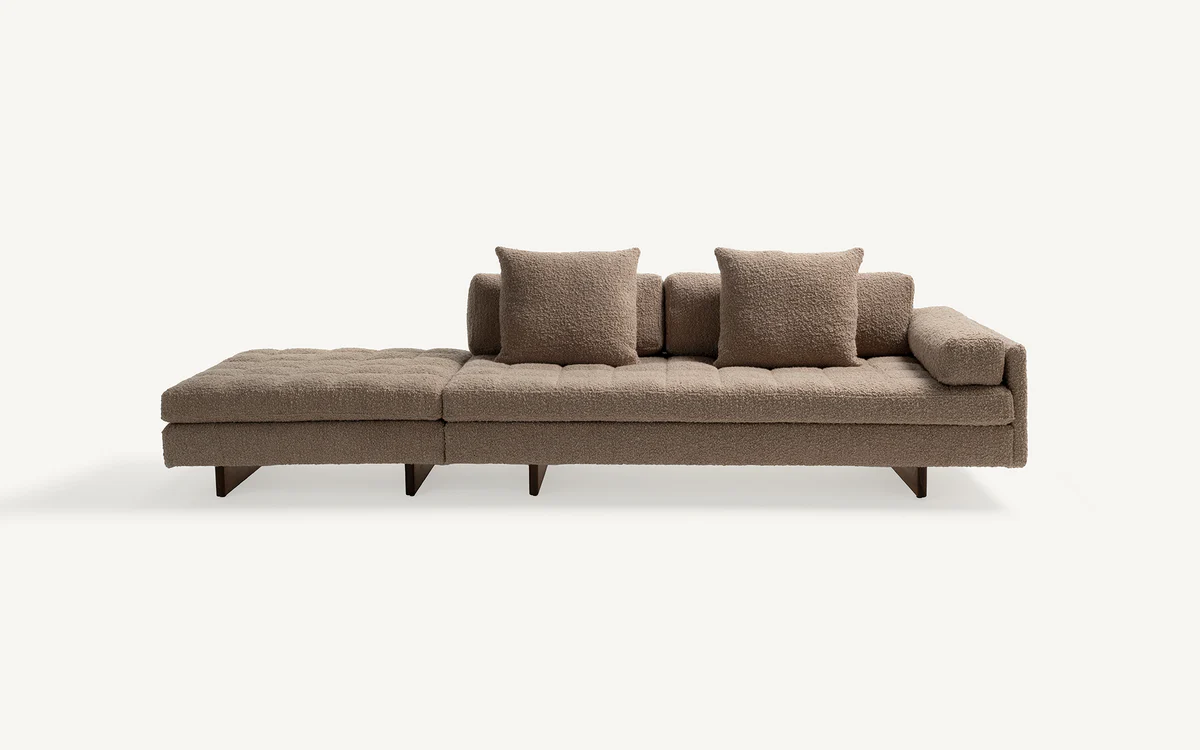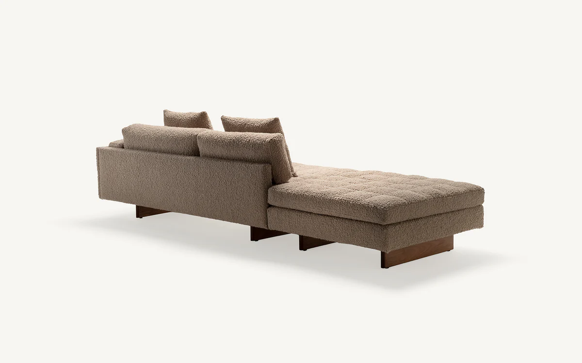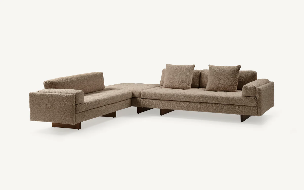 Designer Craig Bassam conceived the BassamFellows Asymmetric Sofa when he began looking for a stylish, scalable sofa that would be suitable for his personal study. He wanted a piece that would harmonize two competing needs – a sofa that would work during collaborative meetings whilst being appropriate for personal contemplation. Asymmetric is the quintessential landscape sofa group, which achieves asymmetrical or informal balance using closed and open elements that appear divergent, but carry equal visual weight. The group consists of three different lengths of sofa units, a corner unit, a chaise, and an ottoman. The planning module allows for a multitude of layout arrangements from a typical sofa format to landscape configurations where armed, armless, and backless elements can be combined to vary the horizon line of the piece and open it up to the room. Regardless of its configuration, the Asymmetric offers a supremely comfortable sit.