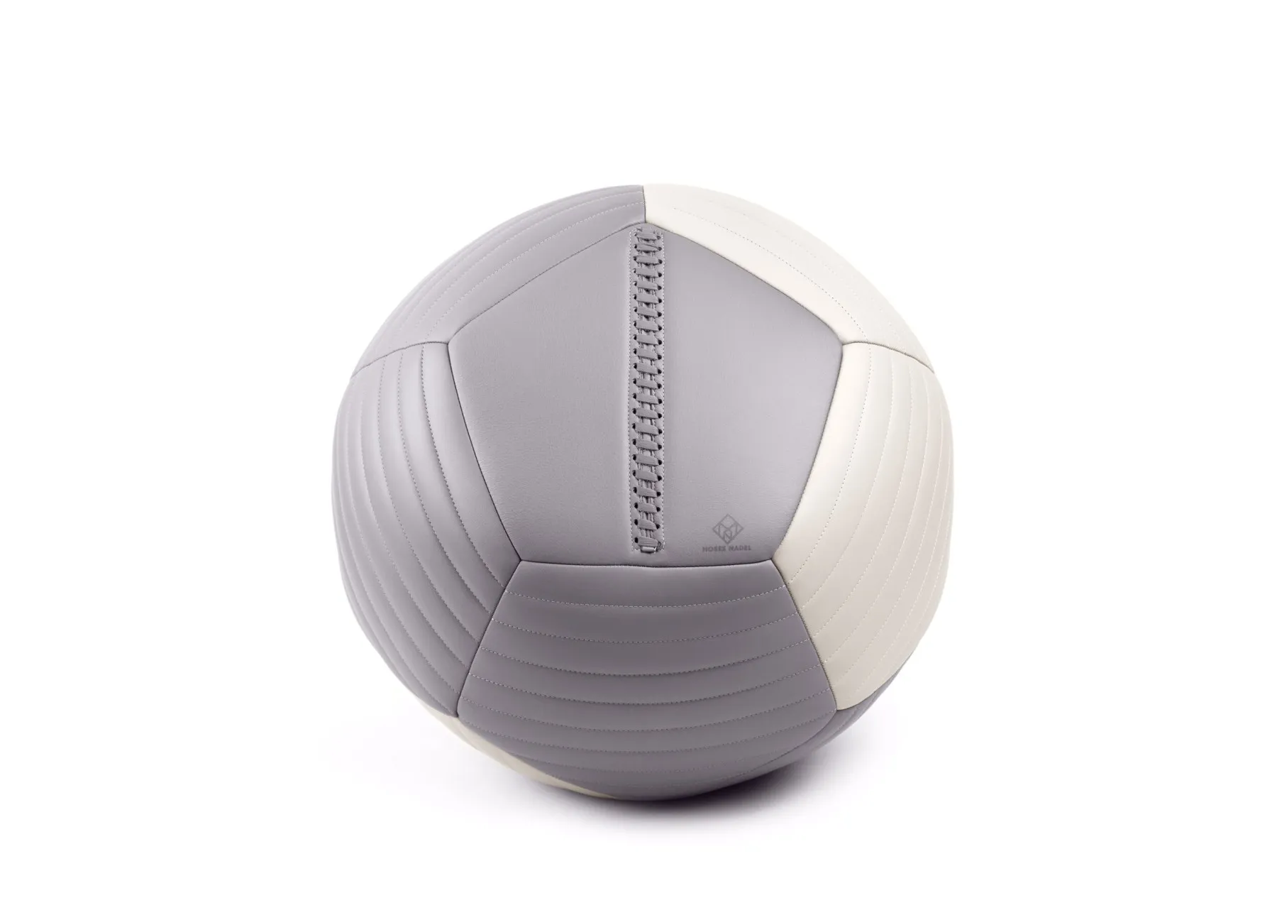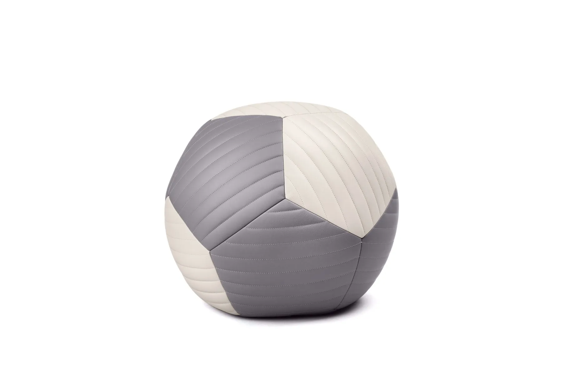 Round, sculptural and uniquely abstract, crafted with supple European leather, the Banded Two-Tone Ottoman is a harmonious contrast of multi-colored banded panels.