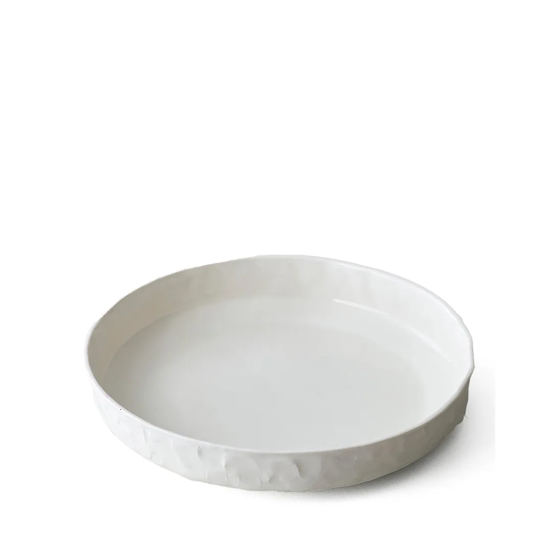 We developed our own glaze recipes and mix them in small batches regularly. There will be variation. Our mussel glaze is a moving gun metal with a metallic sheen. An absolutely beautiful glaze it is can have matte areas as well as glossier areas depending on the piece and thickness of application. The snowflake glaze is a satin finished warm white. You will see some gentle sparkly sheen, hence the name snowflake. It is a warm white. You may see some organic specks on your piece, we do not consider these defects, just part of the handmade nature of our work.