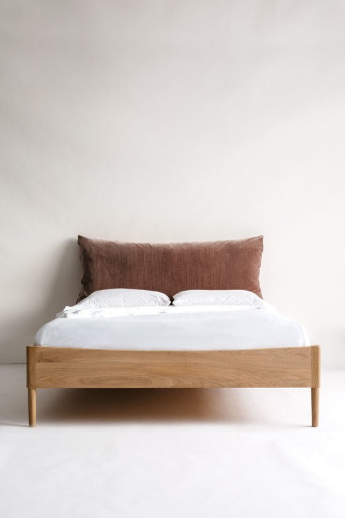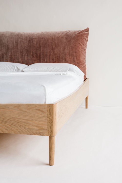 Available in walnut, white oak, or bleached ash, pillow in COM.