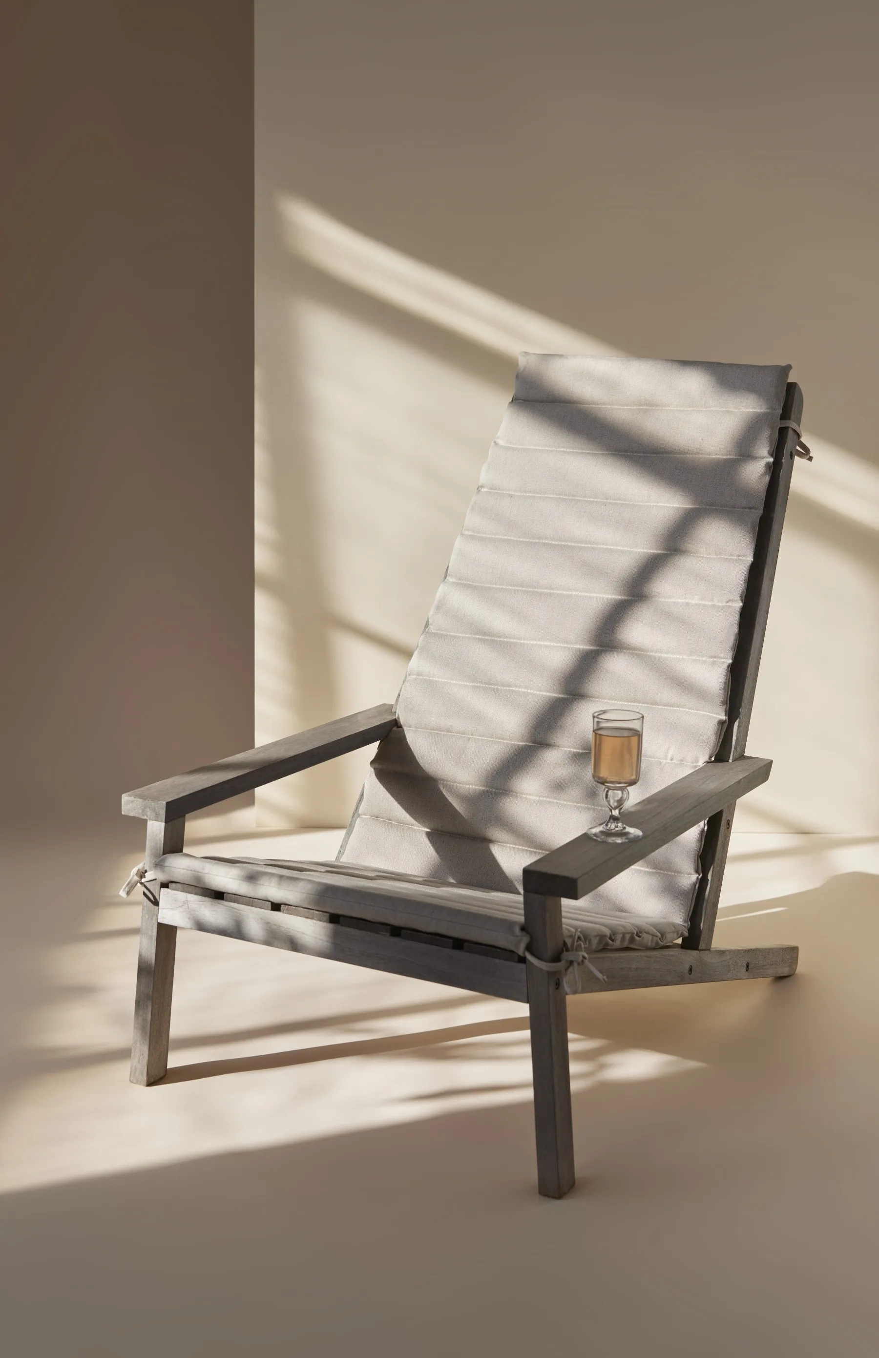Natural in both function and design, the Between Lines Deck Chair is a modern take on the American Adirondack. It features long, angular lines that are perfectly positioned for comfort. Made from FSC™-certified teak, the timeless piece will patinate beautifully over time to a silver-grey hue.