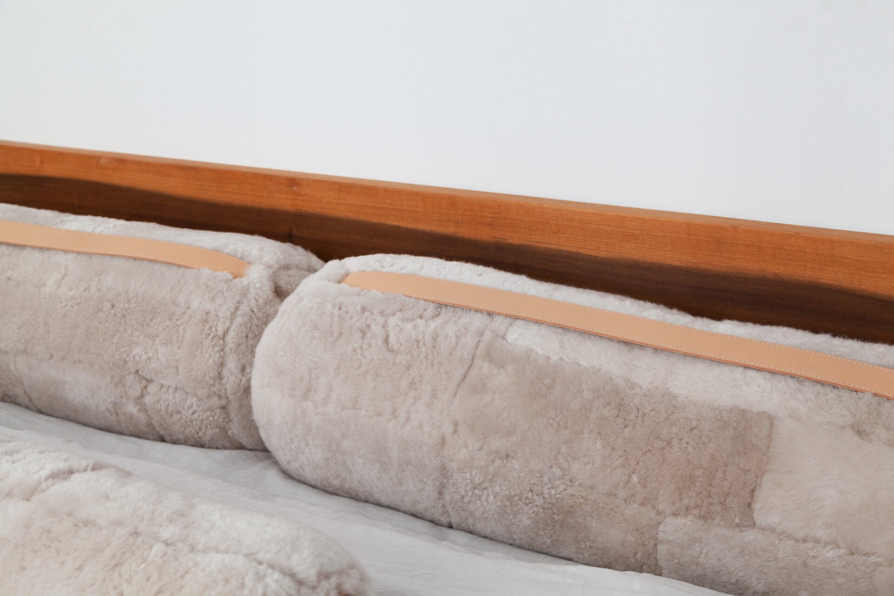This bolster us a unique addition to your bedroom or living space complimented by a robust leather strap detail. Beautifully paired with the Fringe Bolster X.