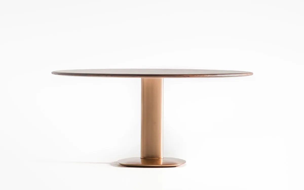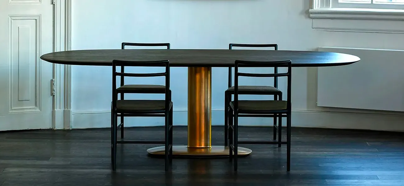 Utilizing this characteristic, the table base supports a bigger tabletop with a small leg, letting you sit comfortably from any position. As cast bronze still has a casting surface from the sand mould, the artisans finally polish the surface beautifully by hand. This process requires both physical strength and technique, even for skilled artisans, because they need to polish it while lifting the heavy bronze.