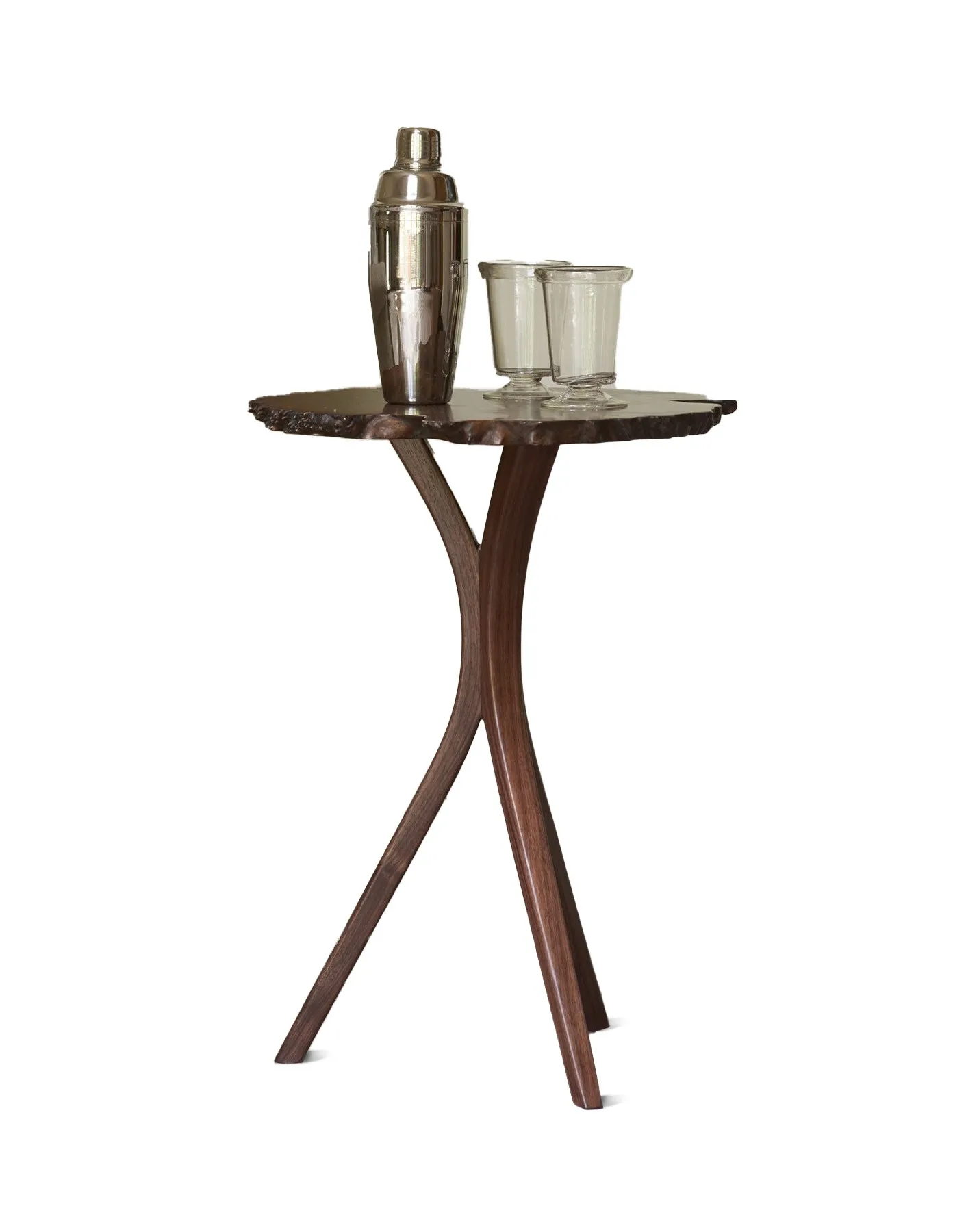 Daniel’s signature live edge Burl Tables made a bit narrower and taller to be able to just lean down and place your drink. He finds just the right slice of a Claro Walnut burl to top beautifully hand carved and steam bent walnut legs. The tables are lightweight and elegant. Finished with natural oil and beeswax.