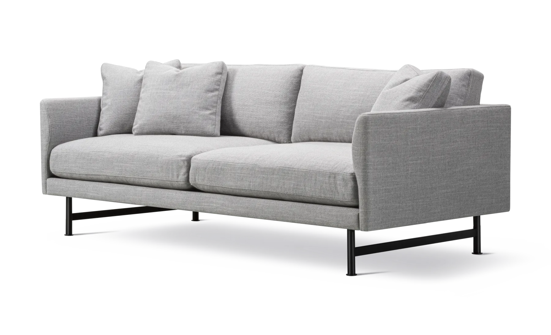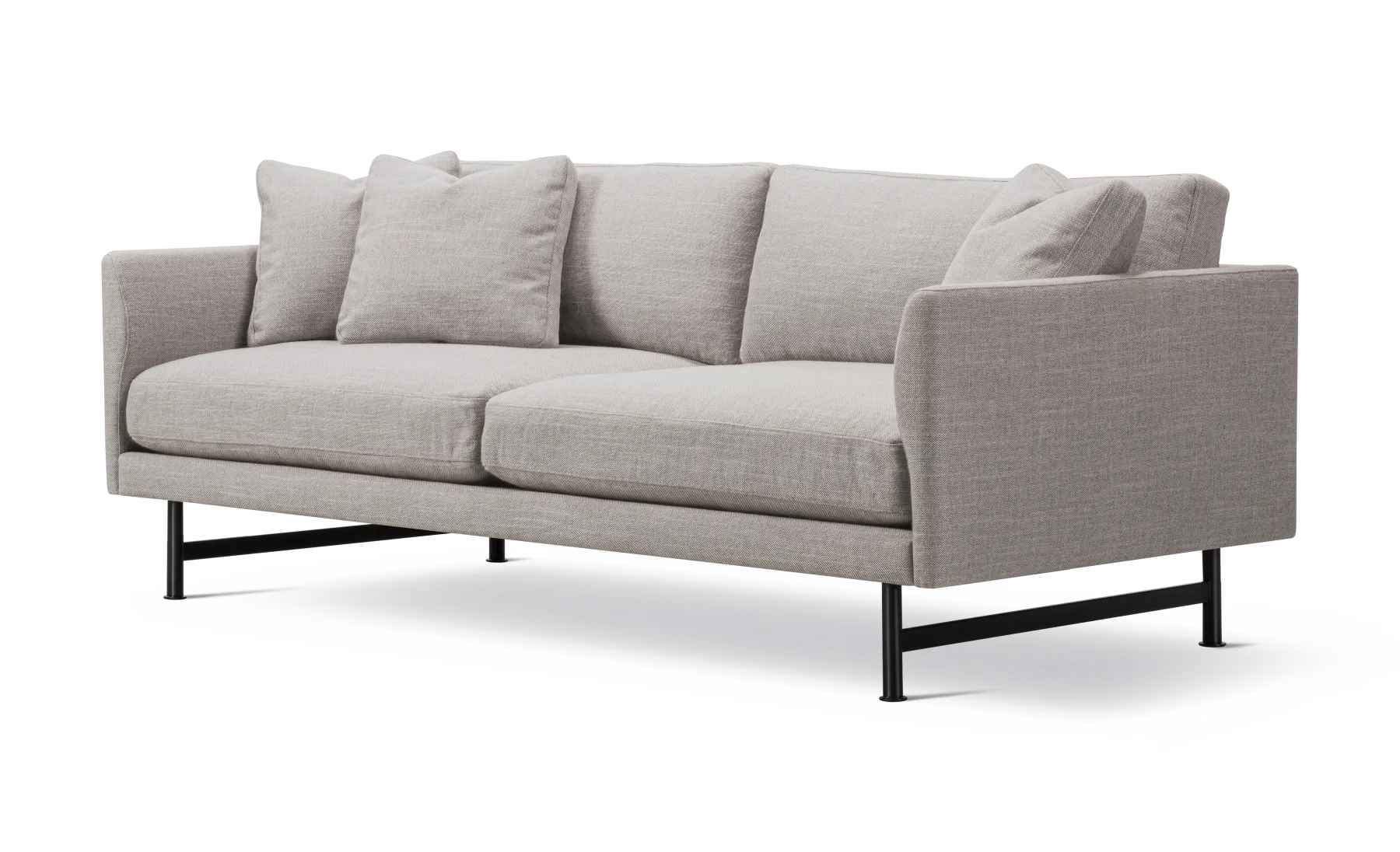 The Calmo 2-seater sofa offers a roomy sense of cosiness, where straight lines converge with discrete curved details. Comfy cushions complete the picture in this understated expression of elegance.