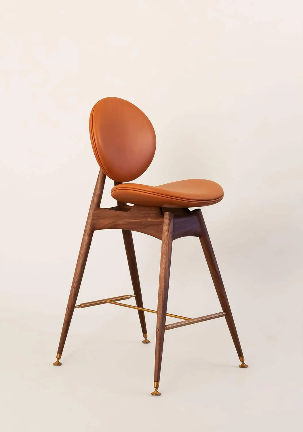 The Circle Bar Chair is the final piece in the Circle Collection. It comes in two heights, suitable for either kitchen/counter height or a bar height and with optional armrest. The Circle Bar Chair comes fully upholstered in a broad selection of fabric or leather. The base is in solid wood and the fittings and footrest come in a selection of four different finishes.