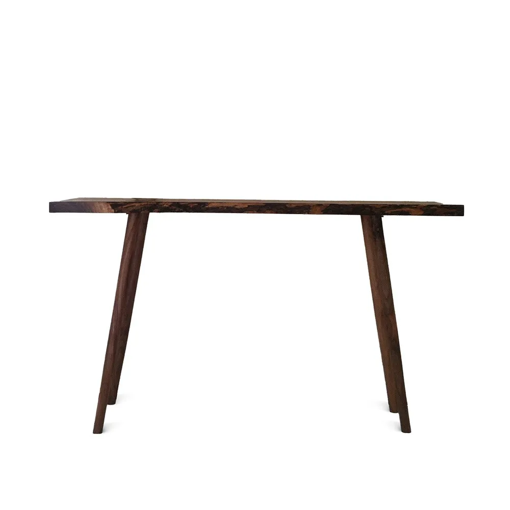 A refined and sleek design, this console table is carved out of blackened and waxed steel. Horsehair accents help enhance the intrigue of the table.