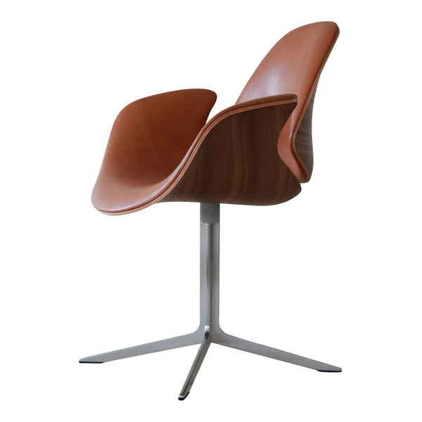The chair is available in oak or walnut and is carefully upholstered in fabric or leather on a base of molded foam. The chair can also be ordered fully upholstered for a uniform expression. The elegant 4-star swivel base of the chair is cast aluminium with a polished finish.