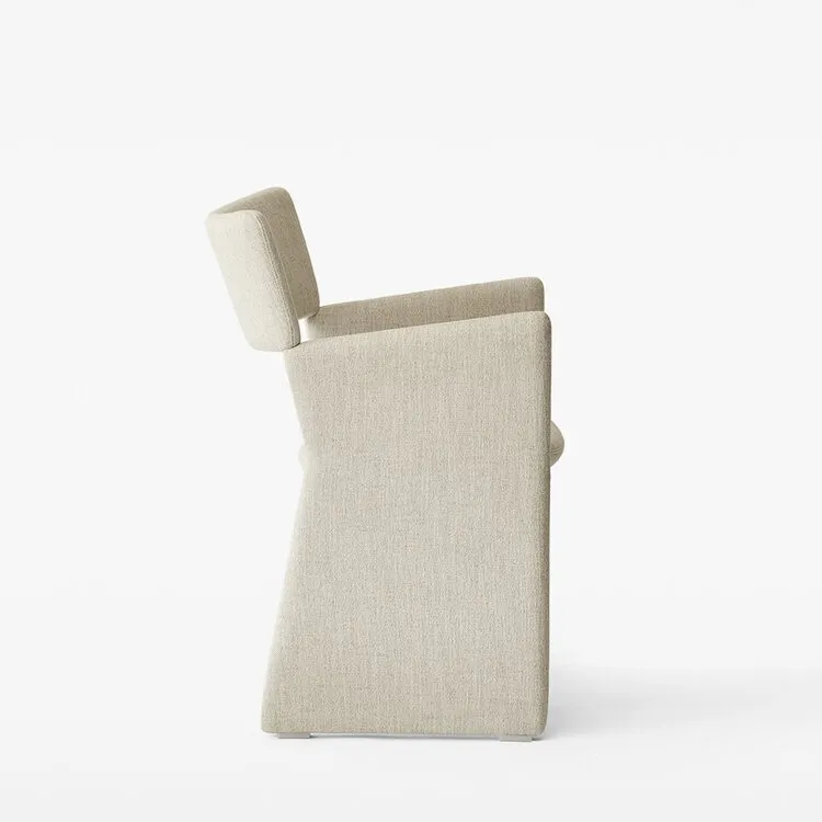 The Crown Armchair is cleverly constructed, with a playful element to it. It’s backrests are perched on the armrests, seemingly unsupported but in fact relying on a strong, concealed steel joint.