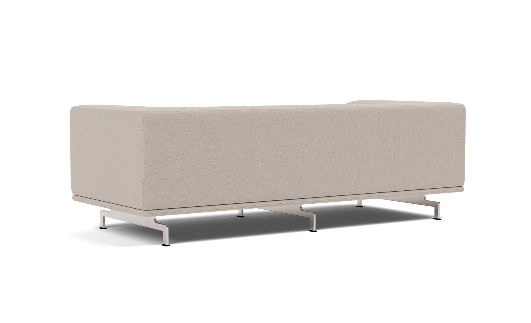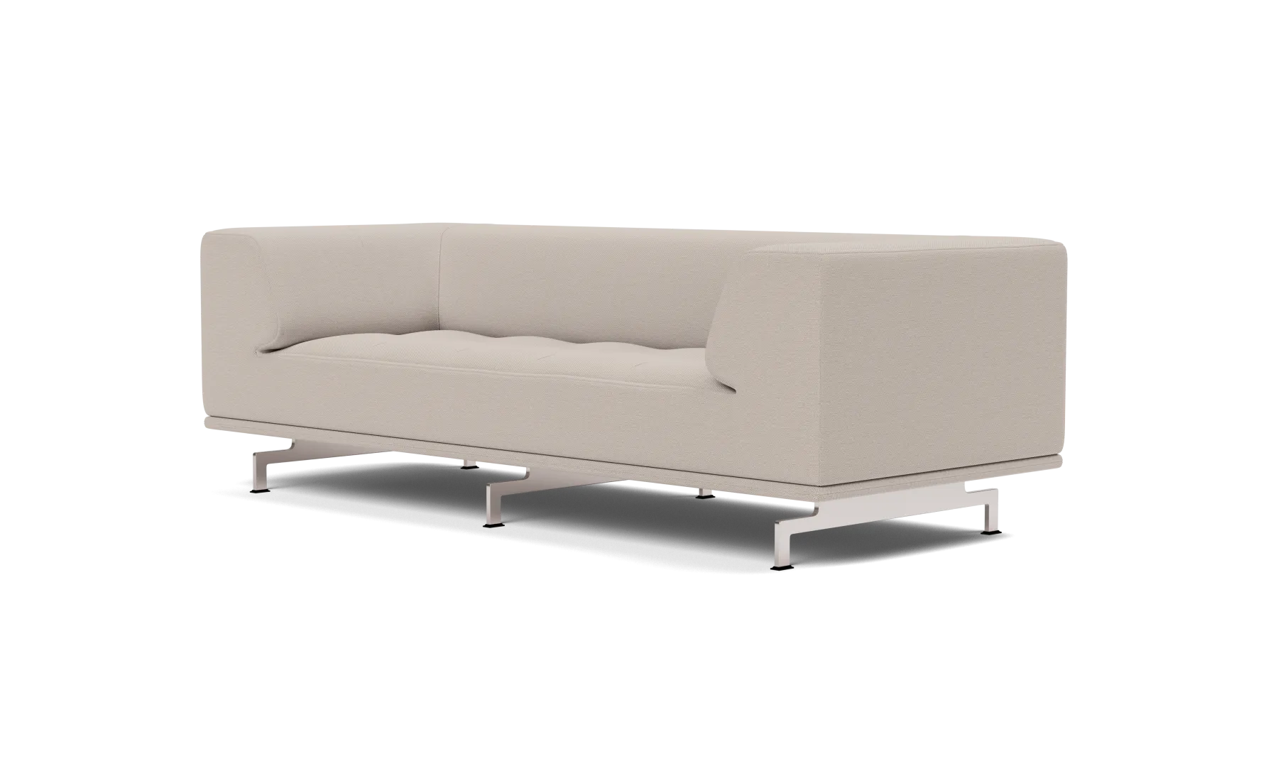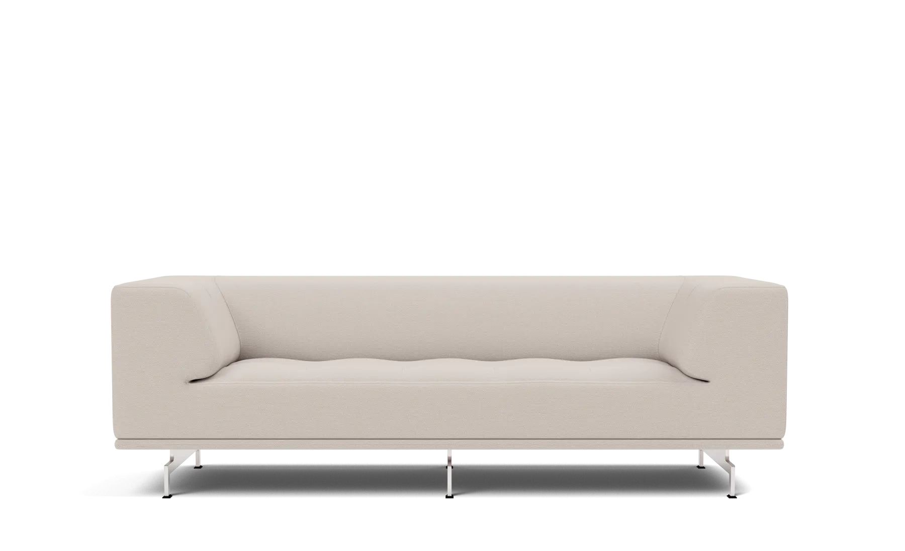 Fully upholstered sofa. Inner frame of wood with nozag springs, cold cured foam and foam duvet. Available in fabric or leather. Aluminum or solid wood base.