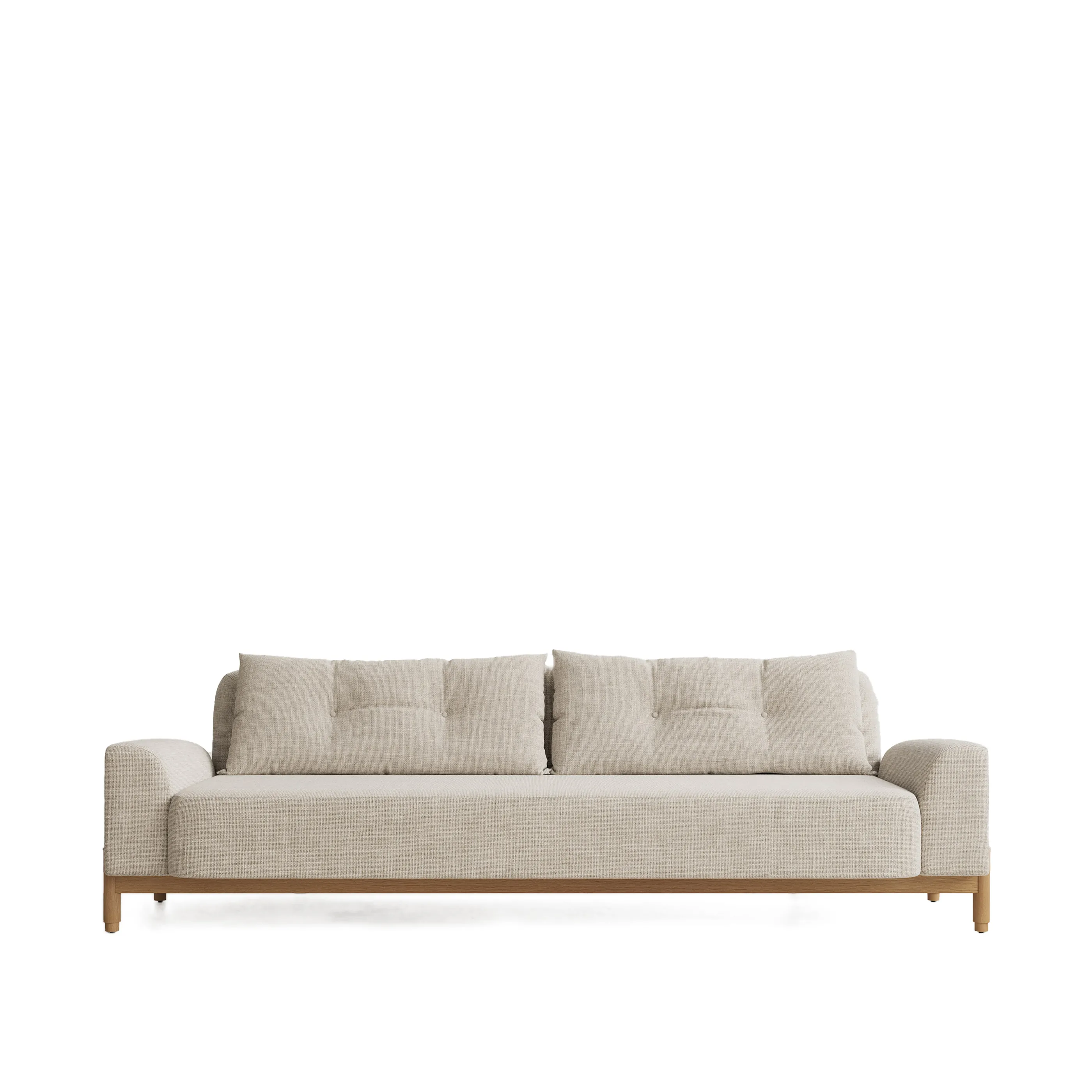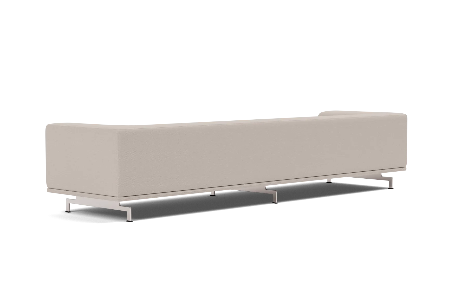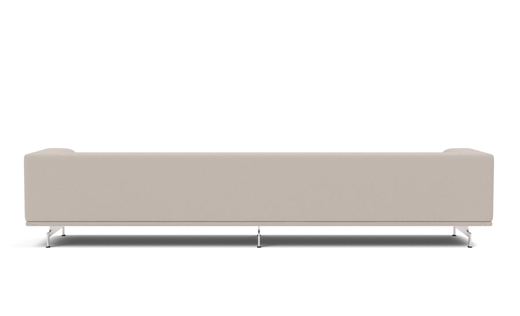 Fully upholstered sofa. Inner frame of wood with nozag springs, cold cured foam and foam duvet. Available in fabric or leather. Aluminum or solid wood base.